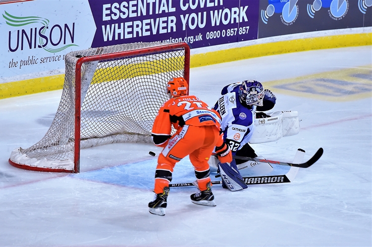 Captain fantastic stole the puck on the Steelers blue line and skated through on Killeen before firing home past the goalie to give Aaron Fox’s side the advantage.