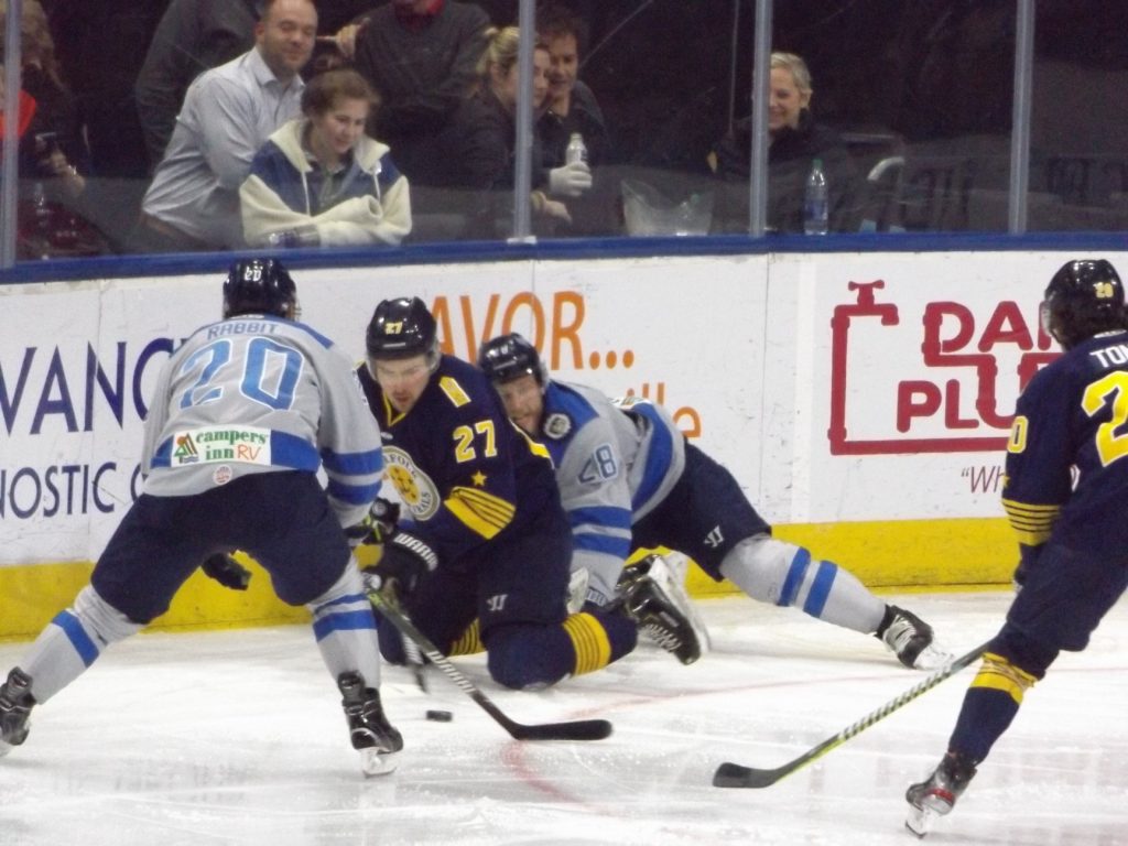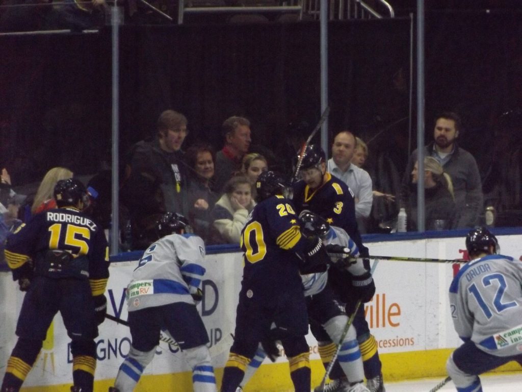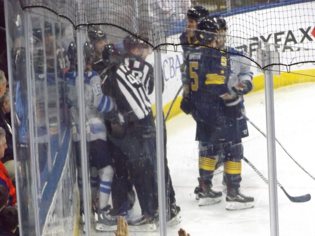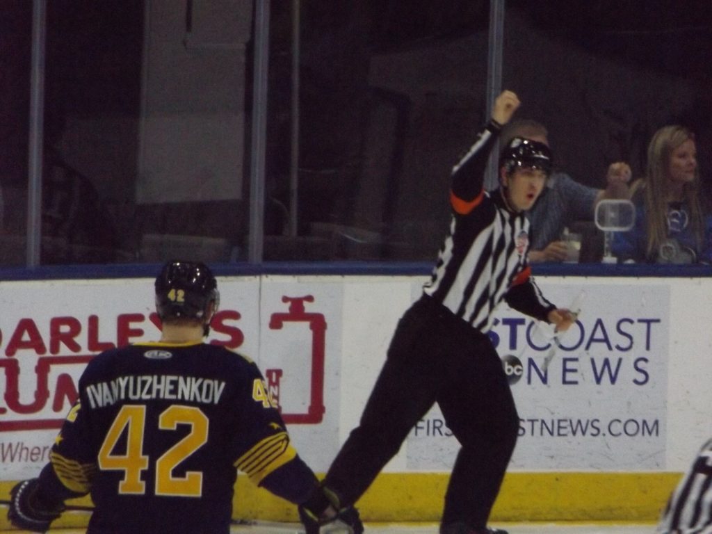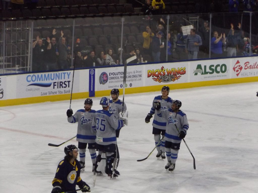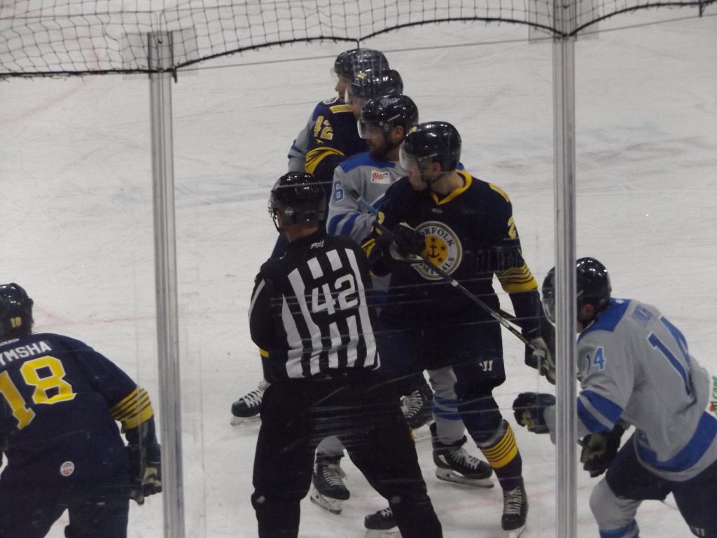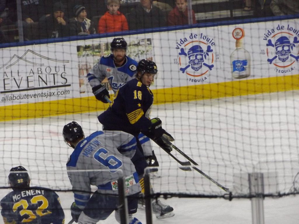 In the extra session, an Admiral defender slipped and fell on the ice which spring boarded the Icemen to a 2-on-1 the other direction. Craig Martin slipped a pass across the crease to Luke Shiplo. Shiplo tapped a shot on goal that was stopped by Theut. However, the rebound hit of the skate of Norfolk defenseman Brycen Martin and the puck roll like a wheel across the goal line to seal the 2-1 victory for Jacksonville.