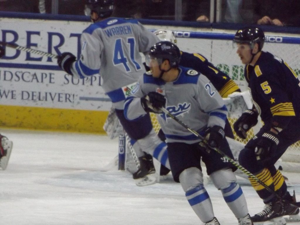 Jacksonville outshot the Admirals 18-4 in the second period to unleash an all-out assault of offensive pressure in the Norfolk end. However, goaltender Theut turned aside all shots fired his way for the first 39 minutes of the contest, but the Icemen final broke through on a late power play opportunity. Dajon Mingo hammered a shot on net that was stopped by Theut. The rebound jumped up into the air in front of Brendan Warren in the low slot. Warren hit the puck in mid-air and directed it into the net for the tying goal.