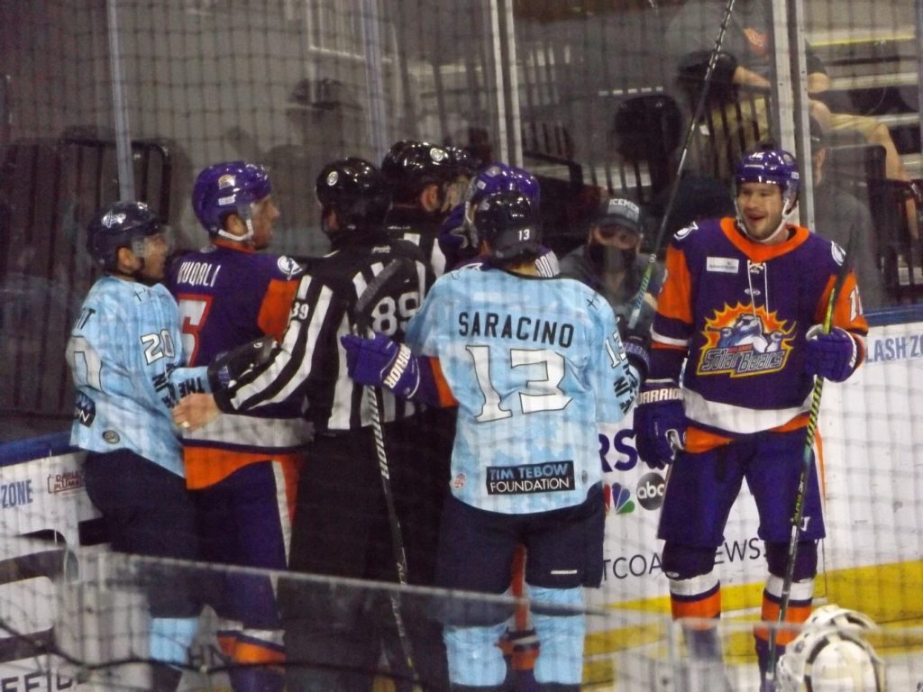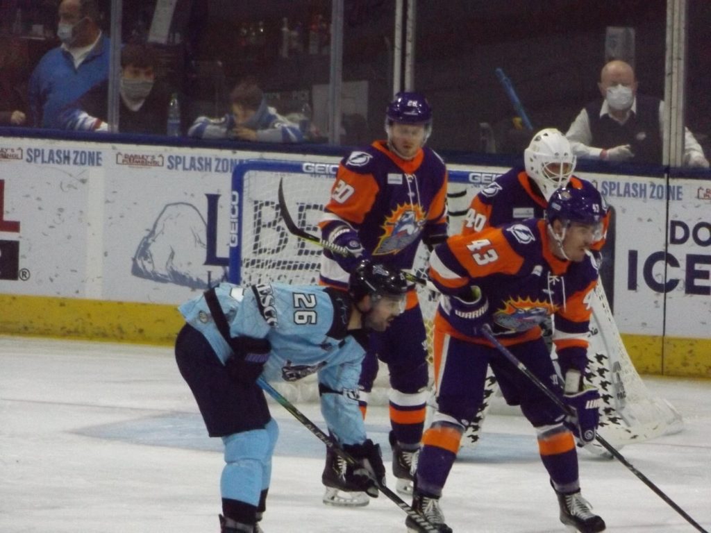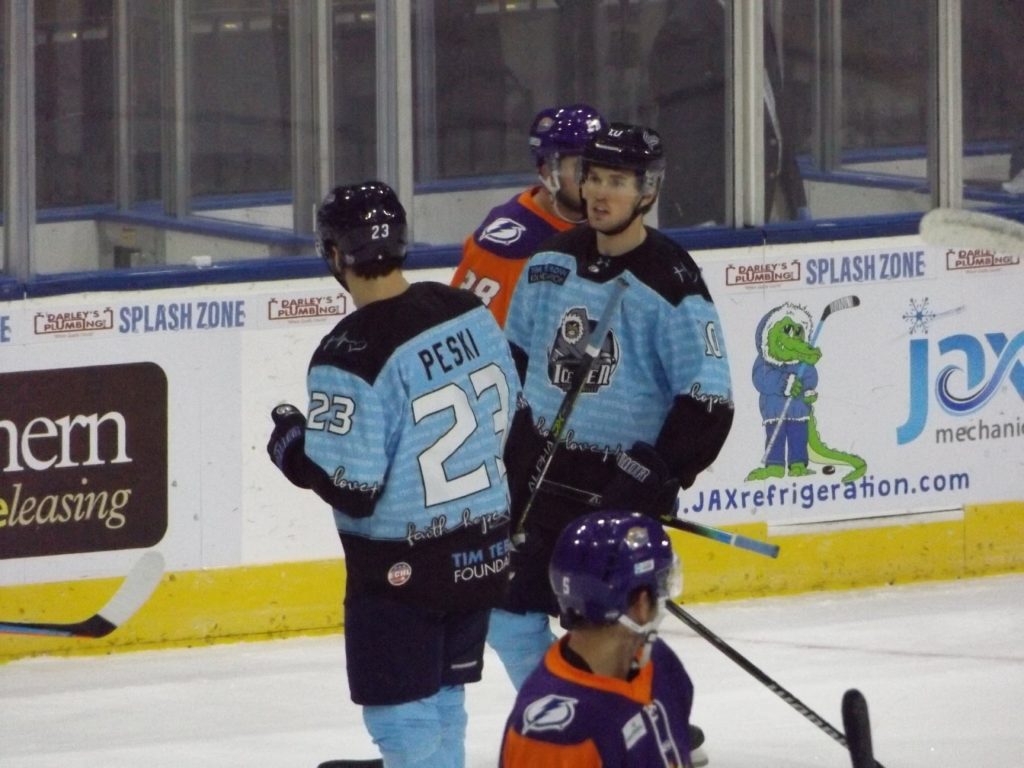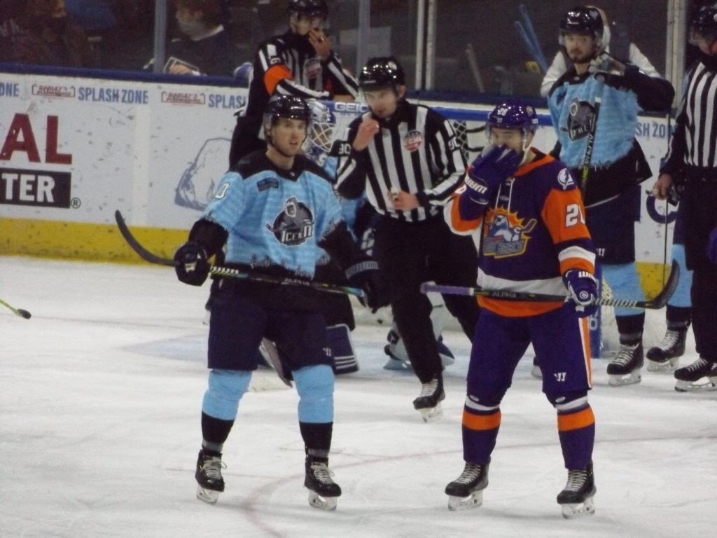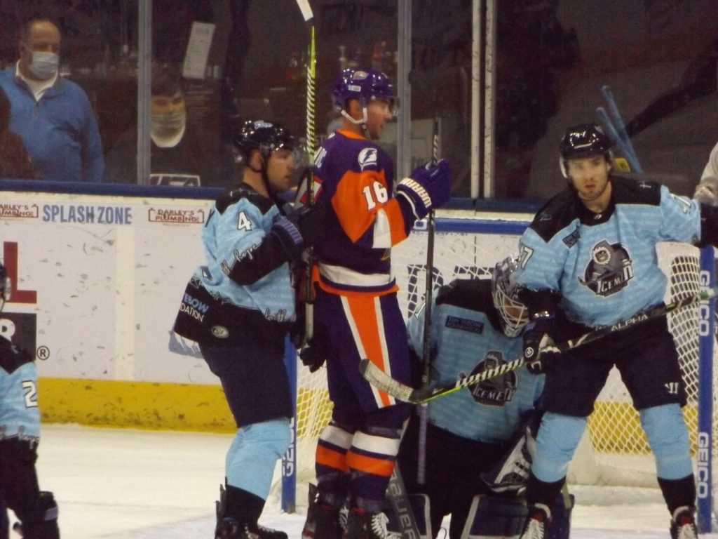 The Icemen’s Nick Saracino scored first on the power play at 7:39 of the opening period to give Jacksonville to early advantage. However, Orlando’s Taylor Cammarata backhanded a shot down low to even up the score at 1-1 just before the first intermission.