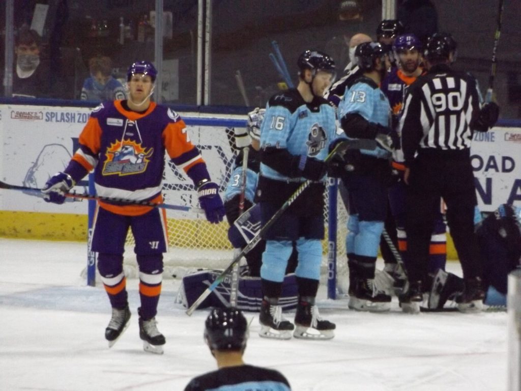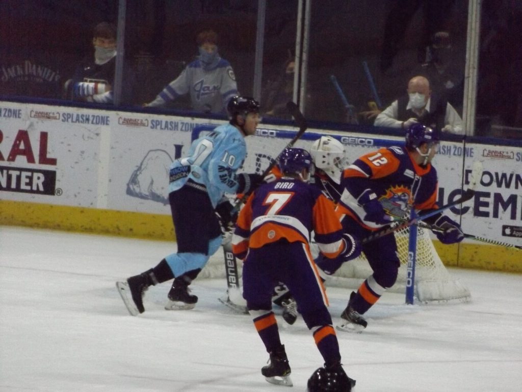 However, in the third, the Solar Bears netted back-to-back goal to take a 3-2 lead. Tyler Bird tipped and redirected the first of those tallies, while Jerry D’Amigo sliced a backhanded shot past Icemen goaltender Eamon McAdam for the go-ahead goal at 15:44 of the third period.