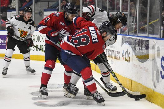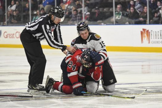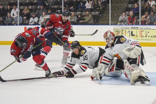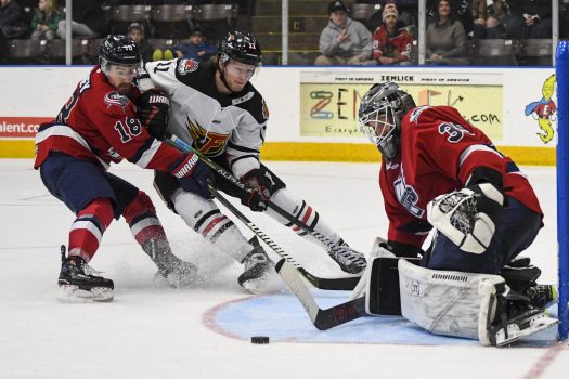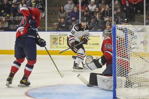 KALAMAZOO, MI— Jake Slaker made teddy bears rain as the Kalamazoo Wings (11-8-0-0) breezed by the Indy Fuel (6-13-2-1) in the annual teddy bear toss game in a 5-2 victory on Sunday afternoon at Wings Event Center.