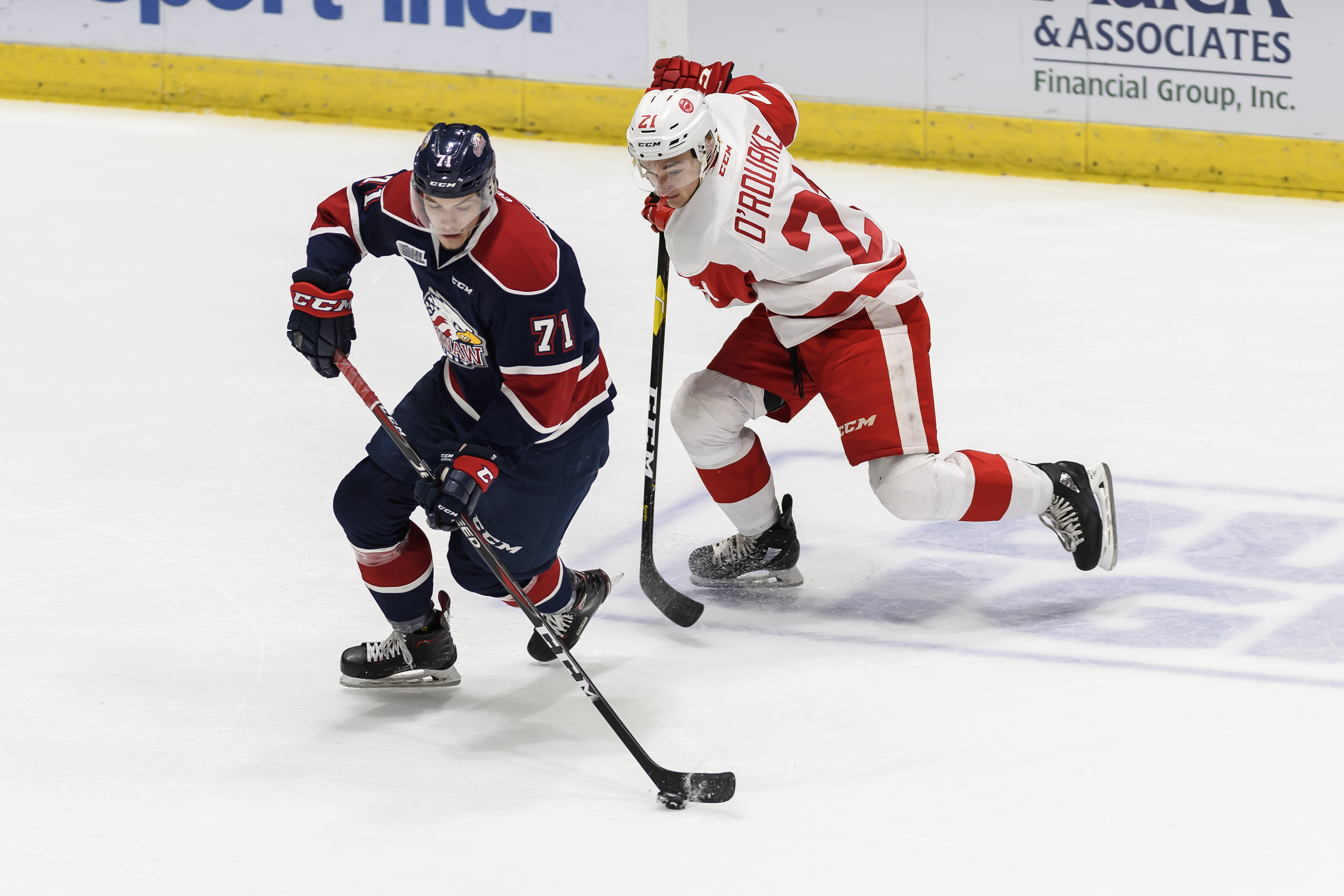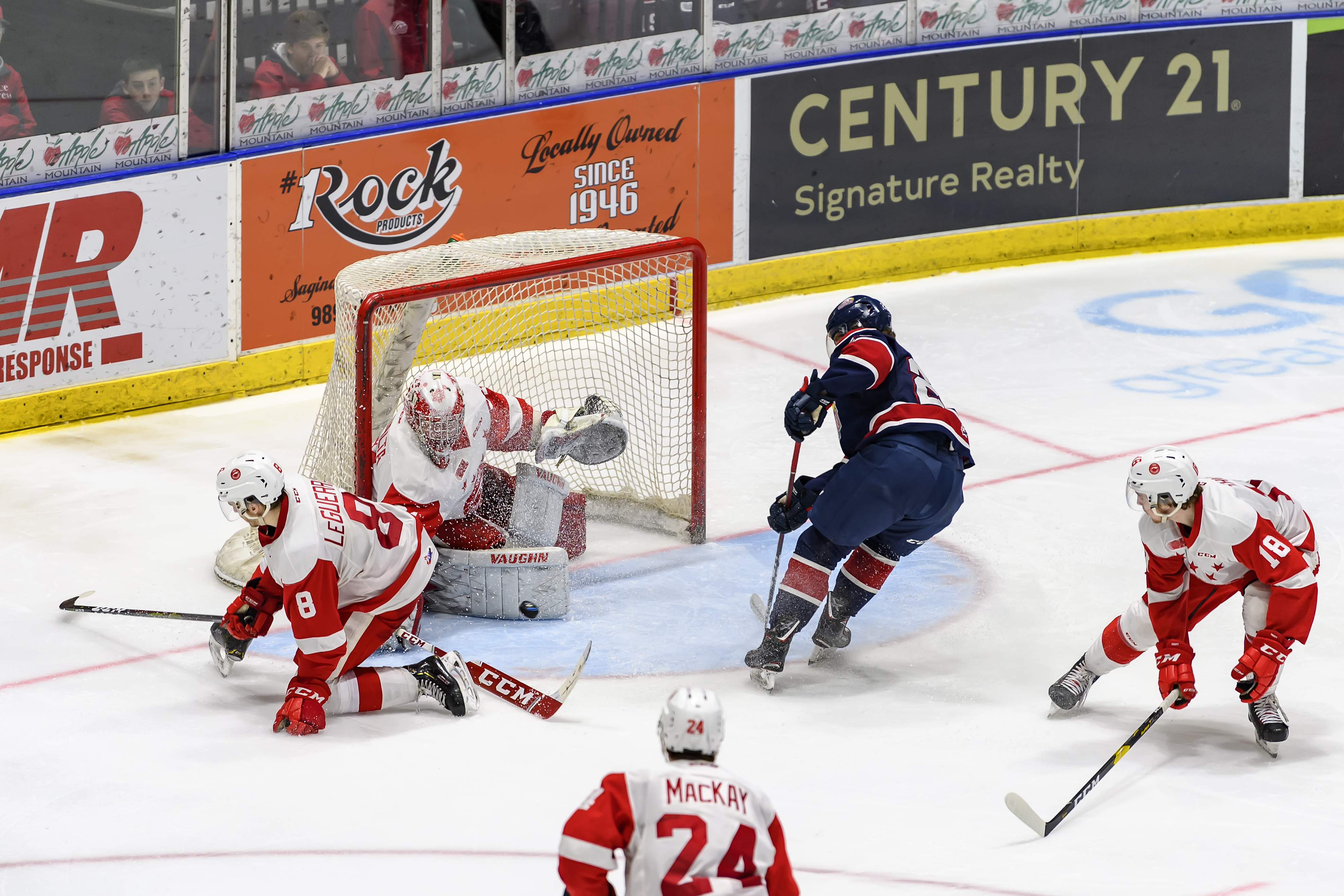 Detroit Red Wings prospect Reilly Webb saved a goal to keep Saginaw at the three-goal deficit. Greyhounds defenseman Jacob LeGuerrier took a slap shot with a wide-open net and Webb sacrificed his body to save a goal.