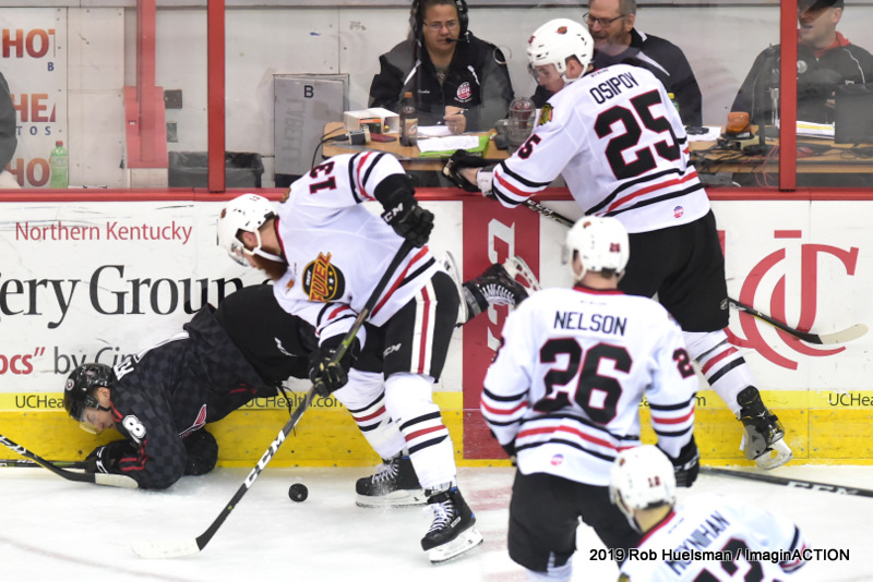 The Cyclones added one more a little less than two minutes later when Glotov threw a shot on goal from the right corner, and it deflected off a defender in front and into the back of the net to put Cincinnati up, 2-0. The Cyclones capped off the period at the 12:34 mark of the frame when forward Jesse Schultz threw a pass from the left side to Powell in front, and he whacked the puck in following a couple of opportunities to put Cincinnati on top, 3-0, after the first.
