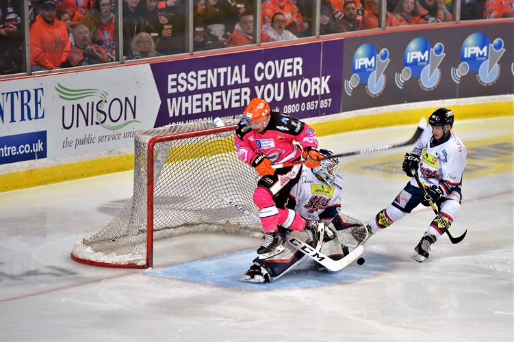 Then straight away, Sheffield had a chance at the other end as Anthony DeLuca skated the puck forward but Dundee netminder, Alex Leclerc came up with a big double save to keep the home side out.