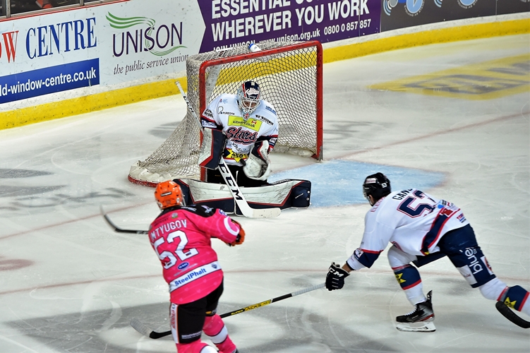 However, Aaron Fox’s men were handed the first powerplay chance of the night when Dundee’s Matt Carter was punished for a hooking foul in the sixth minute and that allowed Marc-Olivier Vallerand to fire Sheffield into the lead.