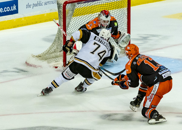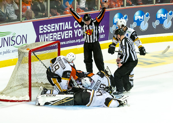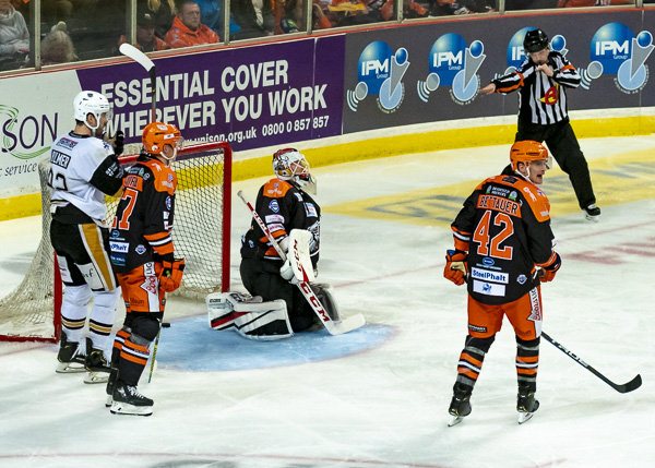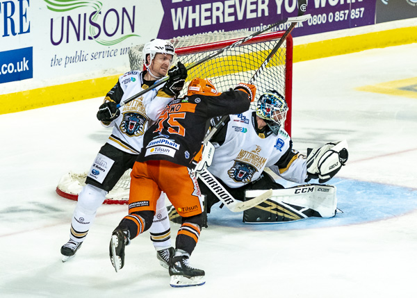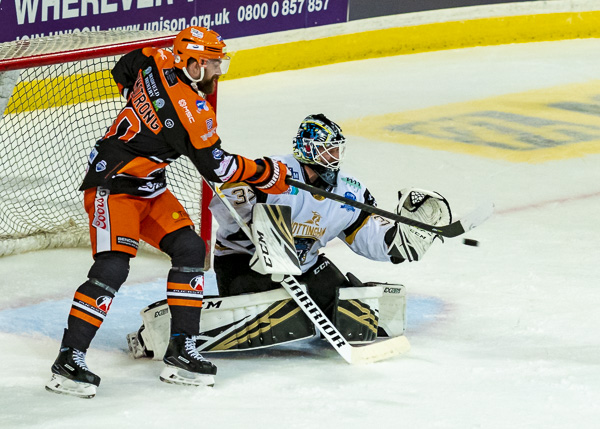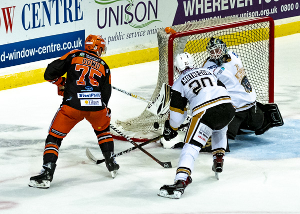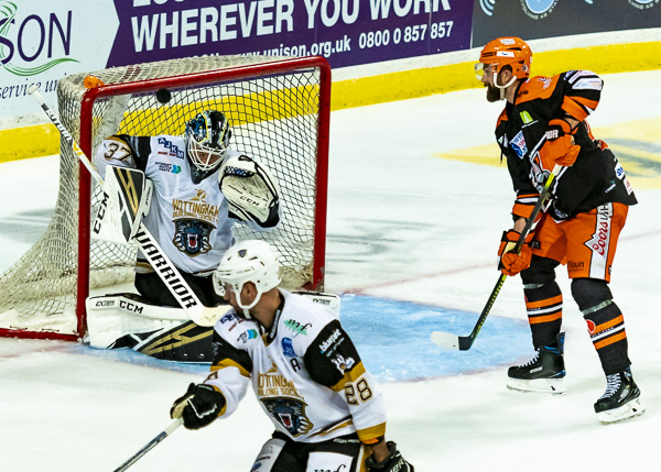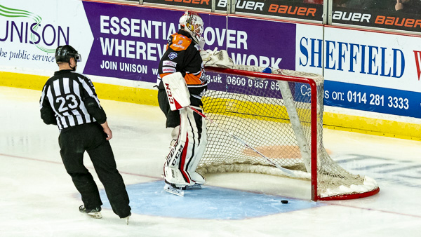 So it was to be penalty shots. Nottingham shot first and Tomas Duba stood tall to deny Hazeldine, Steelers replied by sending out Michael Davies but he could only hit the bar.
