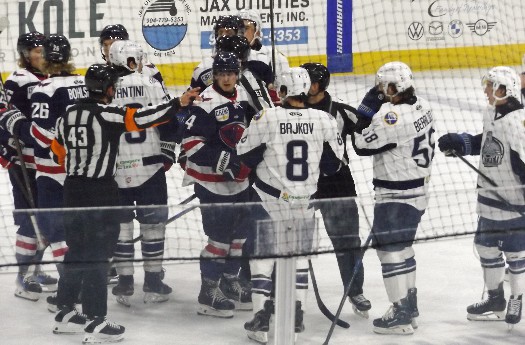 JACKSONVILLE, F.L. – After allowing an early goal on the road, the South Carolina Stingrays scored four unanswered goals from four different goal scorers to skate by the Jacksonville Icemen, 4-1, on Wednesday evening at the VyStar Veterans Memorial Arena.