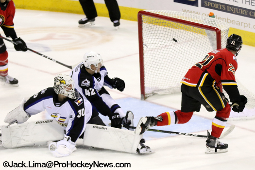 Buddy Robinson (10) scores the Stockton Heat’s second short handed goal of the night – Photo by Jack Lima