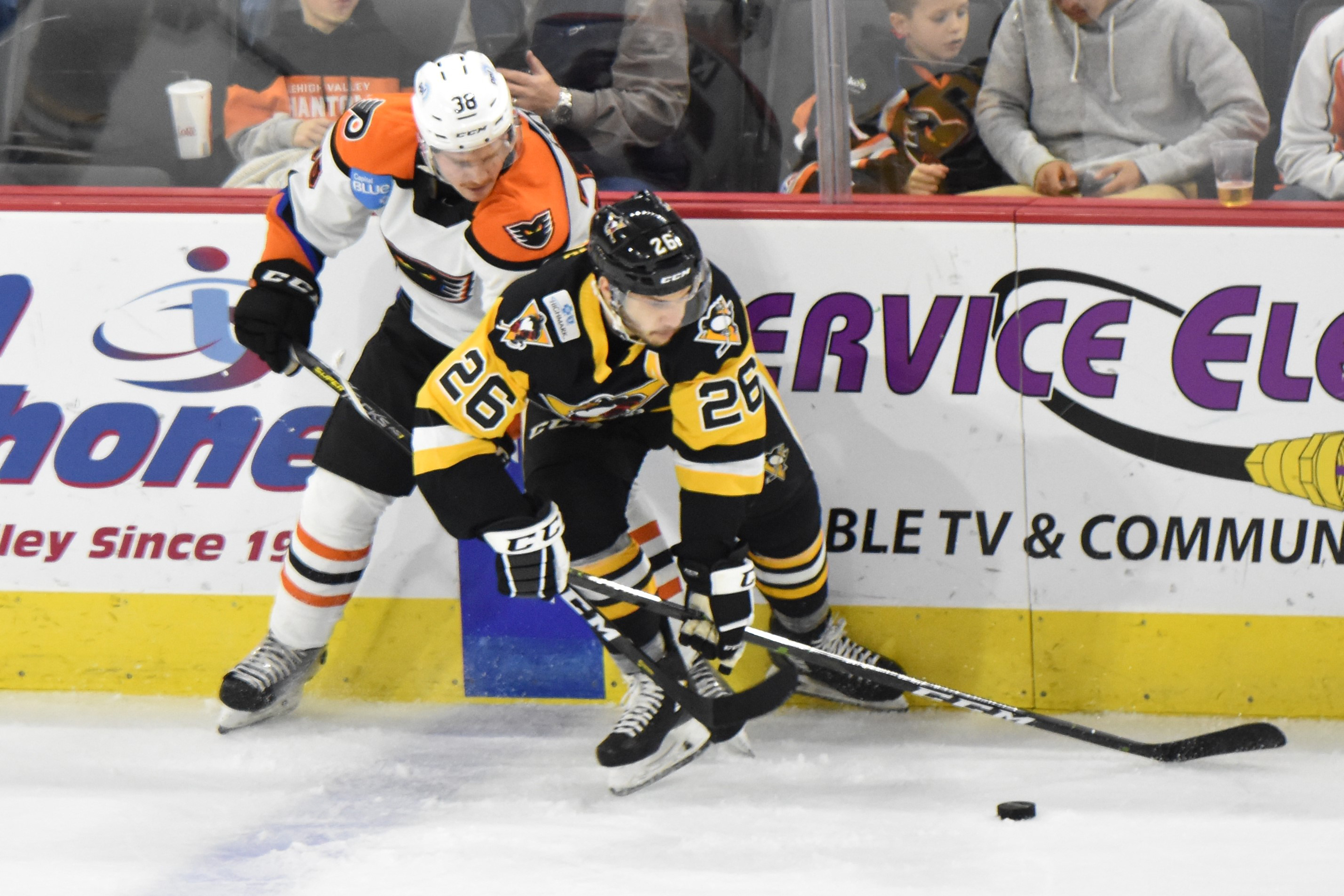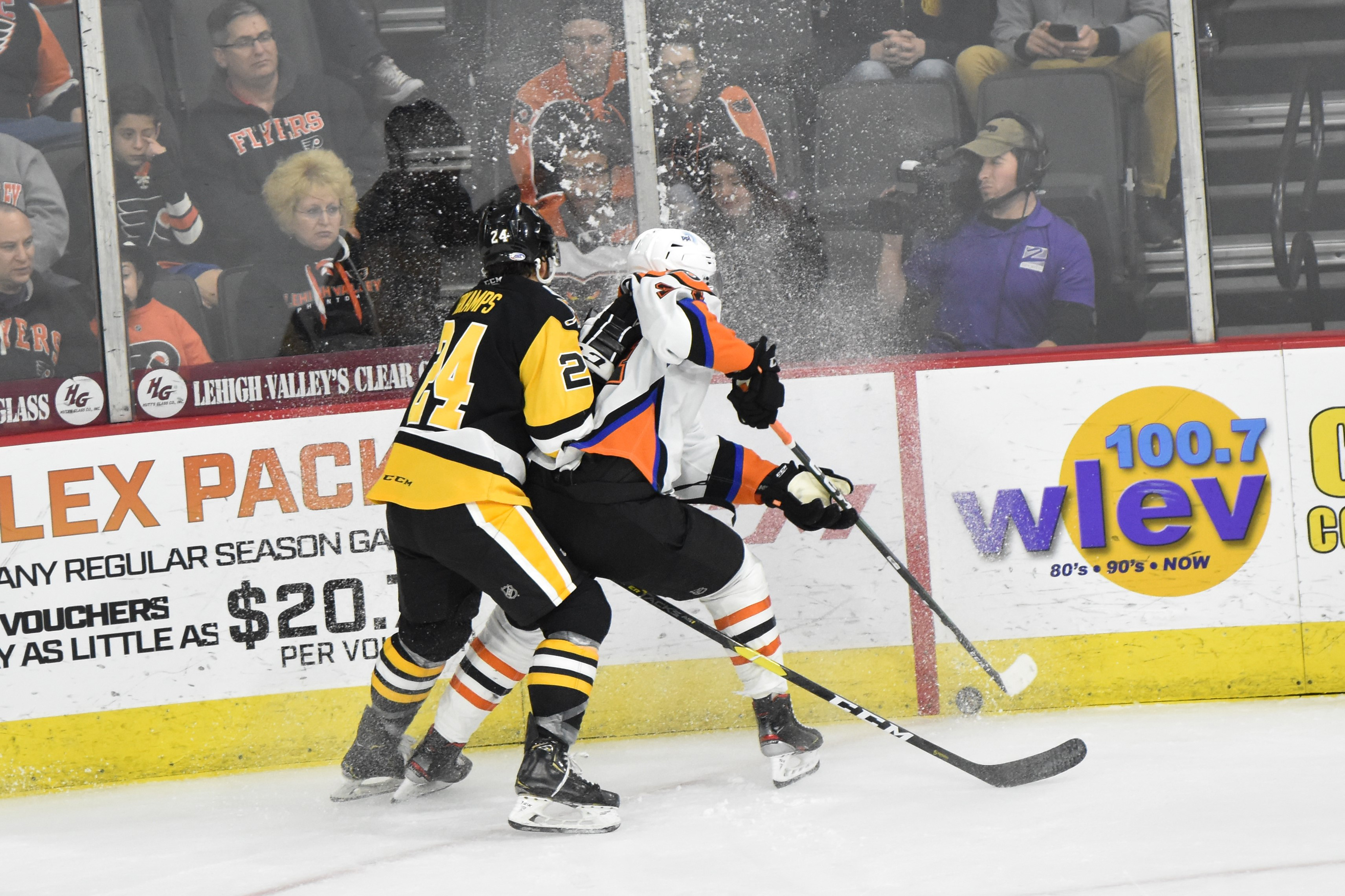 The Penguins would strike first on Friday night when forward Sam Lafferty scored at the 14:18 mark of the first period. Just within the final minute of that first period, Stefan Noesen made it a two-goal lead for the Penguins as he scored on a breakaway goal. The Phantoms would go into the first intermission down 2-0. The Phantoms were able to get seven shots on goal in the period l but were unable to get past Wilkes-Barre/Scranton goaltender, Casey DeSmith.