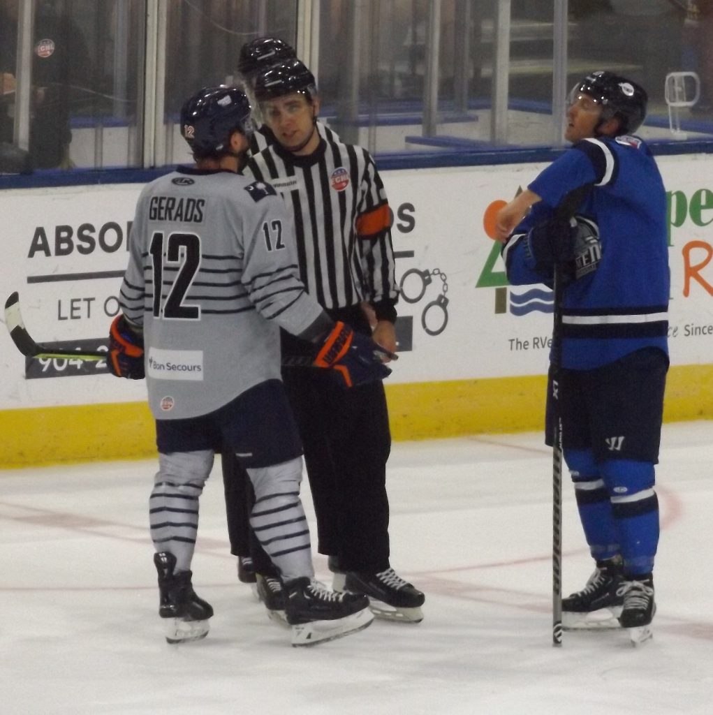 Joe Gatenby then snatched up a drop pass from Dallas Gerads at the top of the circle and moved in on net, crossing in front of the net before releasing a backhand that found its way past goalie Charles Williams and into the net to make it a 3-0 lead.