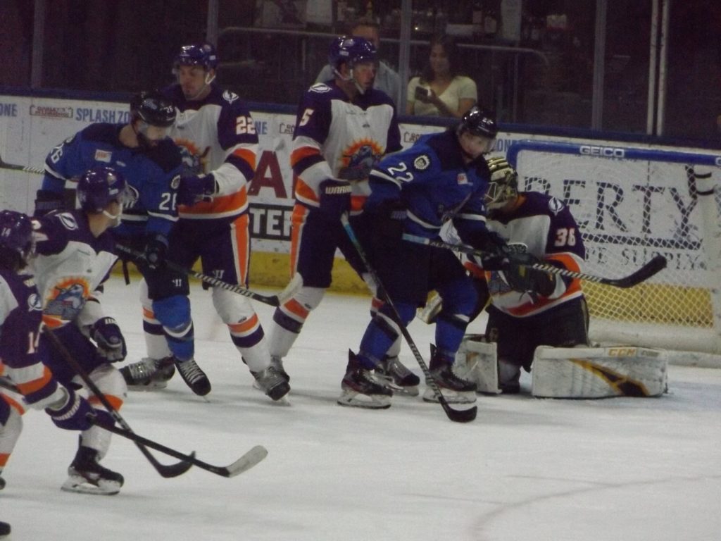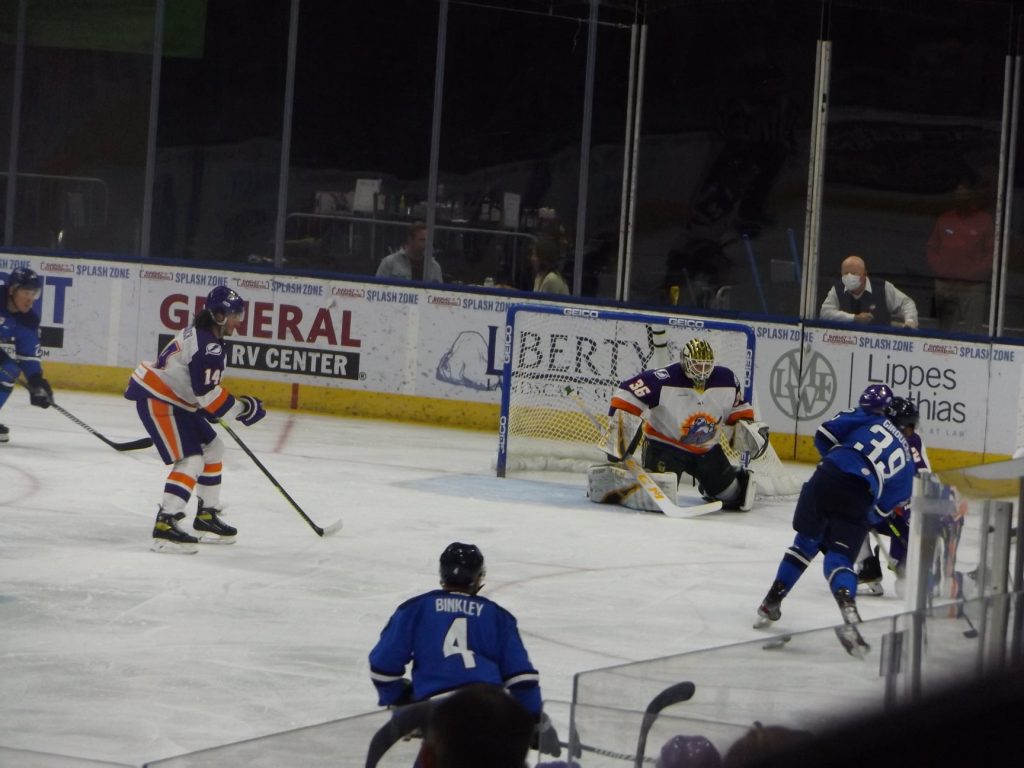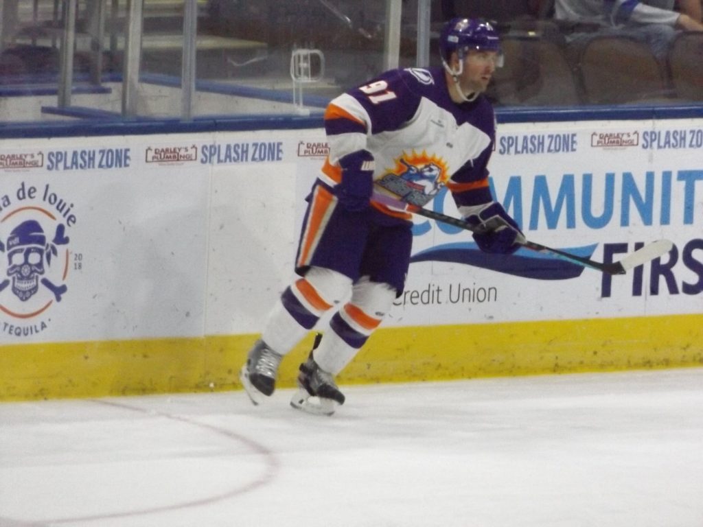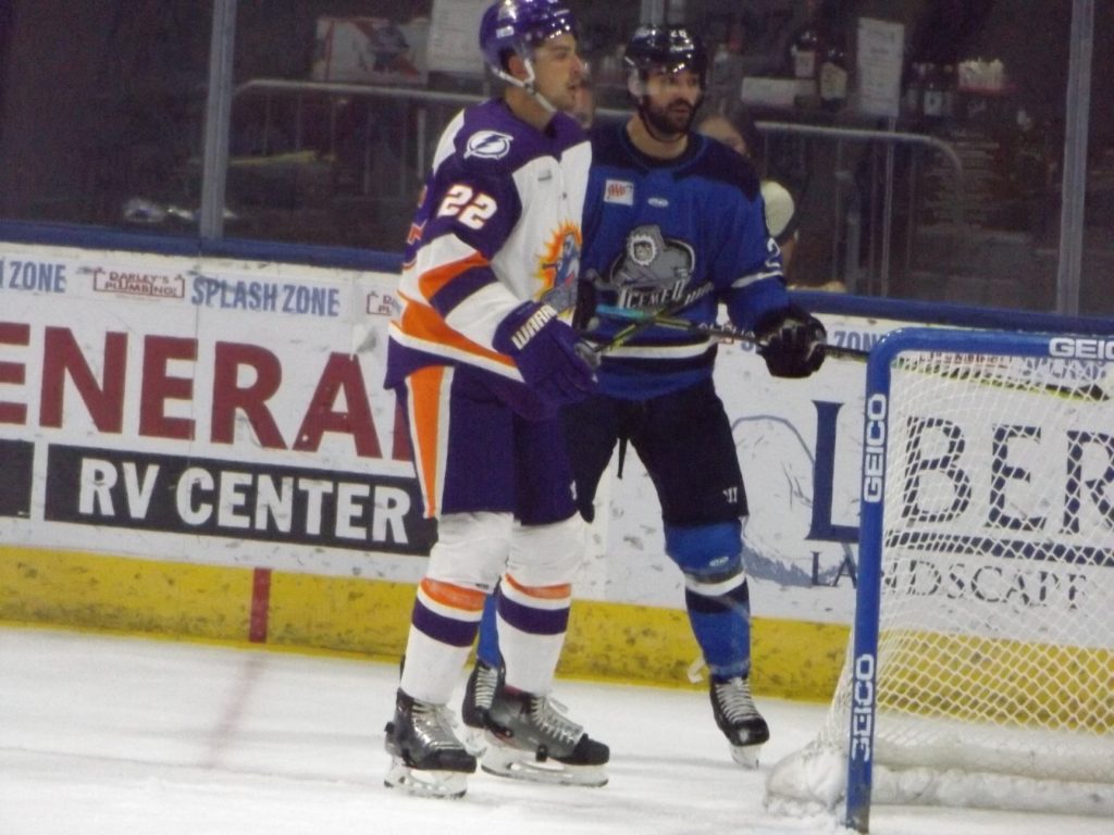 Orlando began a comeback during a power play that occurred a little over a minute after Aquin’s tally. Off the ensuing offensive zone faceoff, Mark Auk teed up a pass to Aaron Luchuk who blasted a one-timer past Icemen goalie Charles Williams for his 17th tally of the season.