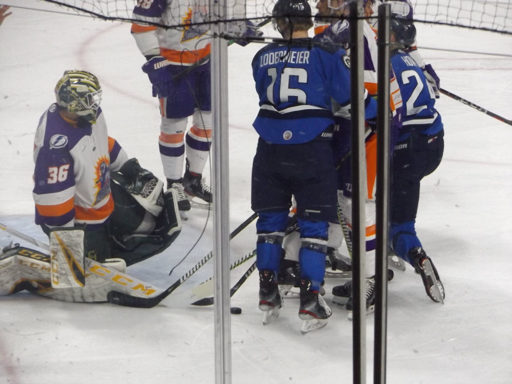 Following a scoreless first period, Jacksonville got on the board first at the 4:48 mark of the second. Following a save by Orlando goalie Kris Oldham on a shot by Abbott Girduckis, the rebound ended up behind the net. Szmatula tracked the puck down and sent a pass to the bottom of the right faceoff circle where Girduckis was waiting to slam his second shot into the net for his 7th goal of the season.
