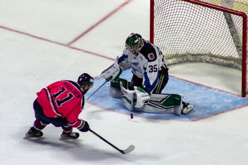 About halfway through the first period Justin Ducharme (5th) scored on a five on three power-play to hand Idaho a 1-0 lead. The Steelheads outshot the Oilers 13-10 in opening 20 minutes of play and took the lead into the dressing room.