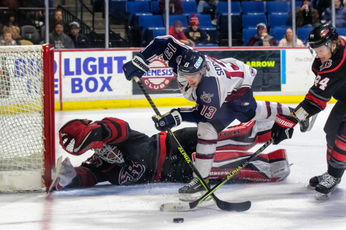Weiland Parrish potted a rebound past Gage Alexander 7:54 into the second to tie the game 1-1. Parrish followed up with his second of the frame with 7:45 left in the period, giving Rapid City a lead they would not relinquish.