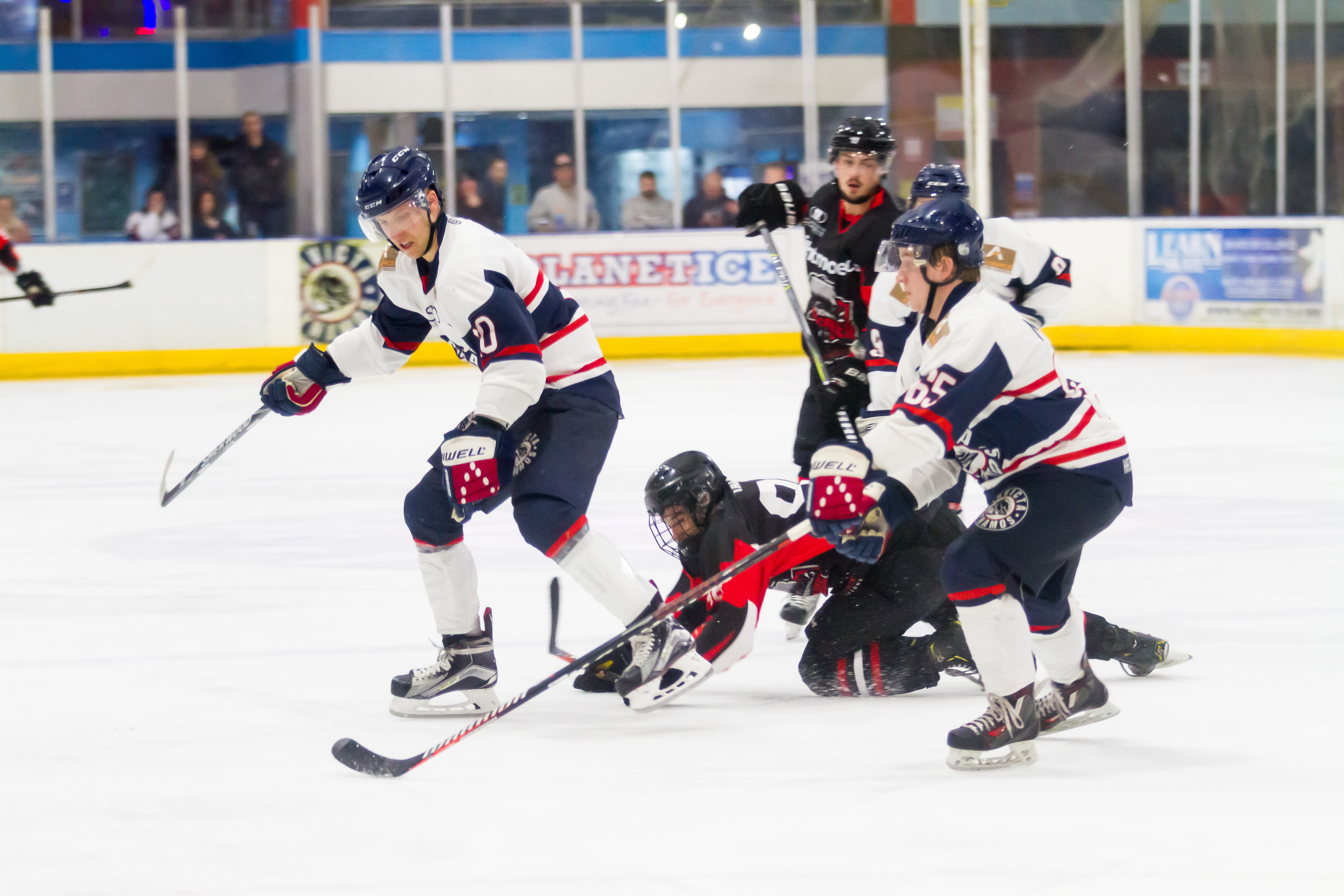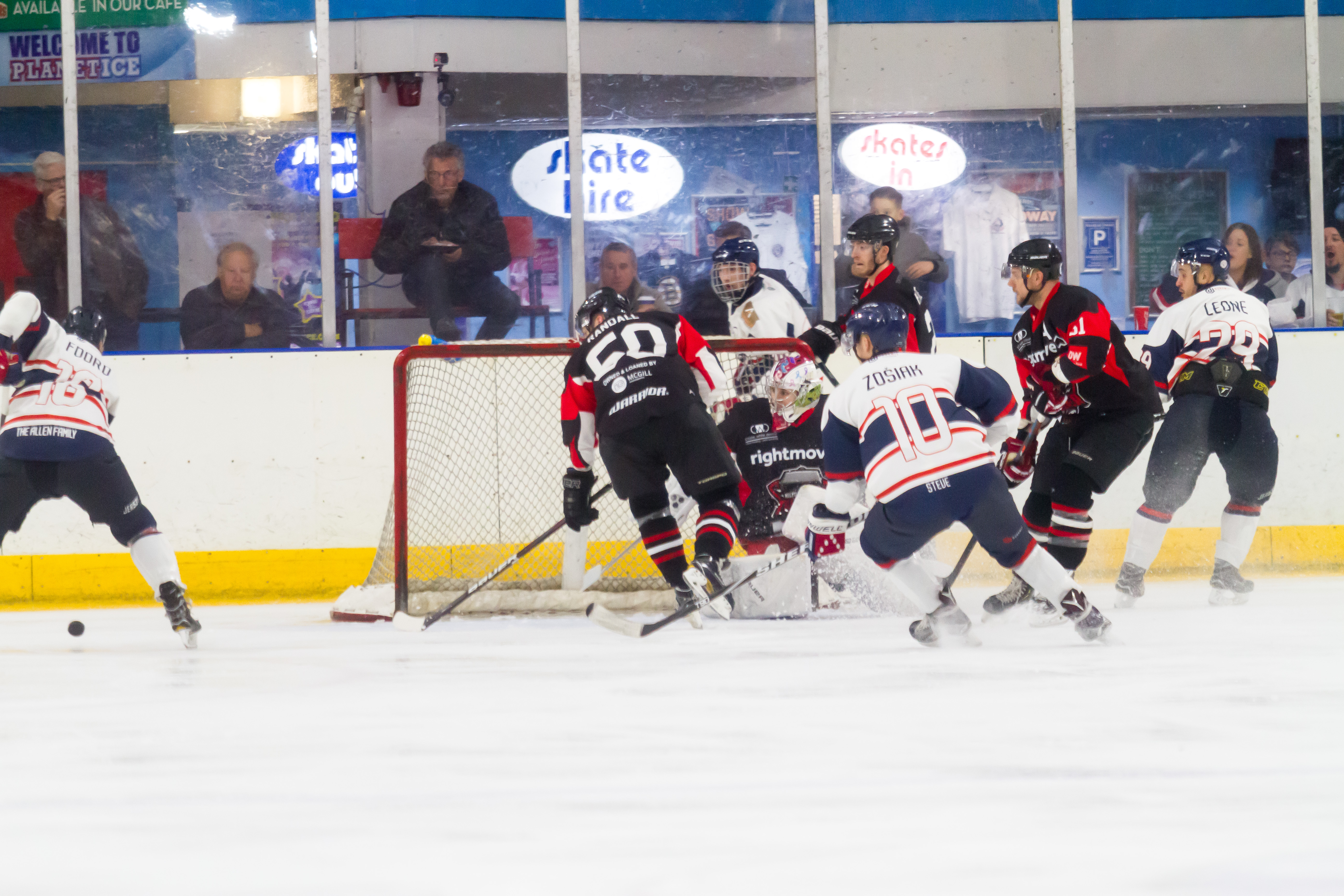 The second period began, and the two teams battled for dominance. Oskars Ancitis was sent to the box for two minutes for high sticks. Soon, Strawson was to join his fellow teammate in the box as he was called for a two-minute hooking penalty. Goal three then came for Thunder on the p0owerplay courtesy of Rio Grinnell-Parke – the Milton Keynes forward turning in a rebound from the edge of the crease at 30:37. The goal angered the Dynamos netminder and he slammed his stick into the boards in objection.