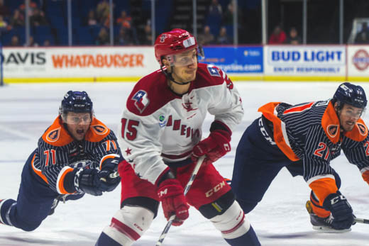The Oilers buzzed out to a 7-0 shots advantage early in the third period, capped off by a game-tying deflection from Ryan Tesink. The goal pulled Tulsa even at 4-4, as the teams headed to overtime. After the Americans were called for a too-many-men on the ice penalty in the extra frame, Sampair redirected a slap pass from Thomas on the power play to give Tulsa the comeback win. It was Sampair’s league-leading seventh game-winner this season.