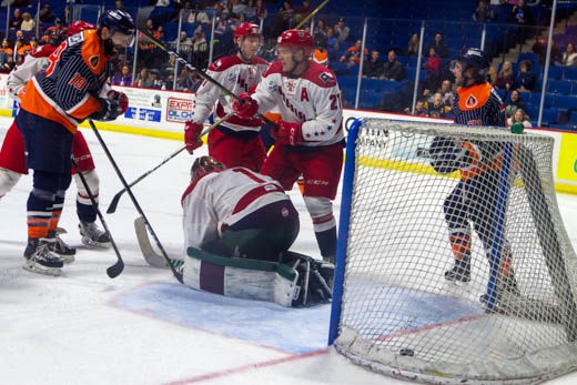 A wild middle frame saw six combined goals, the most scored in any Oilers game this season in a single period. Salituro put Allen ahead 2-0 on an early breakaway, before the Oilers clawed back to tie the game with back-to-back goals 16 seconds apart midway through the stanza. Jared Thomas deflected a puck past Motte late in a power play, and birthday boy Roman Ammirato scored on a breakaway off of the ensuing face-off.