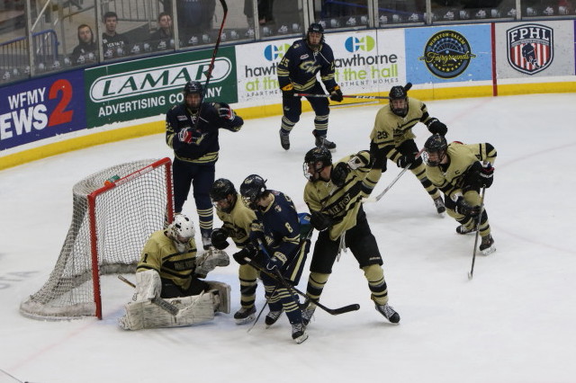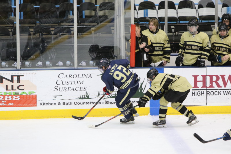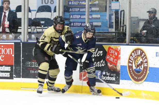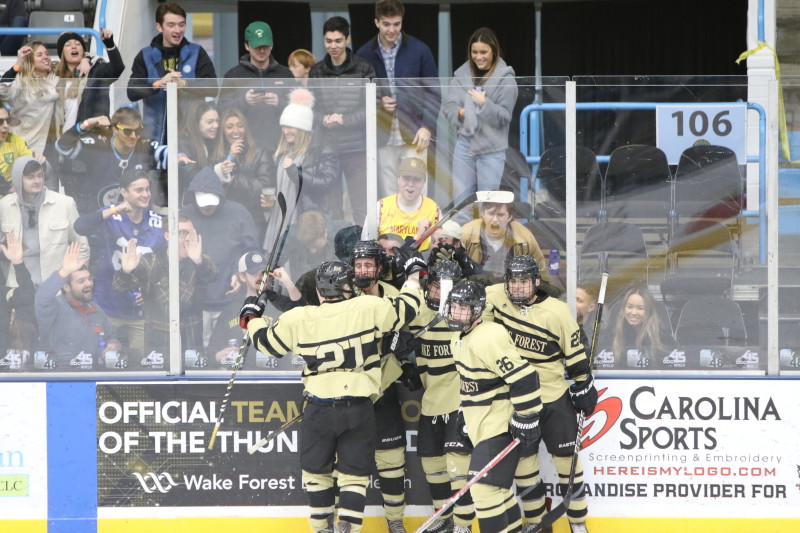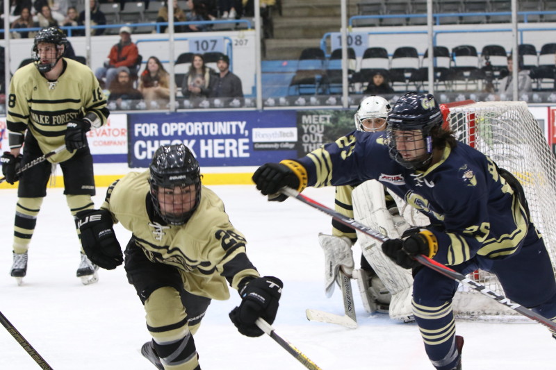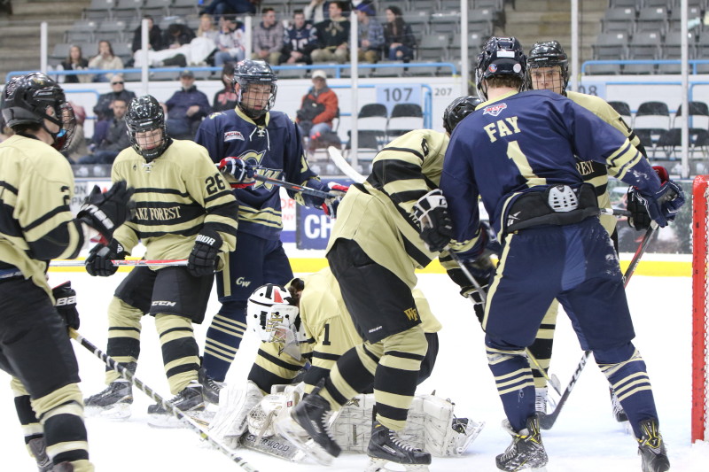 WINSTON-SALEM, NC: The Wake Forest Demon Deacons took on the George Washington Colonials in the first ACCHL semifinal game of the night on Saturday, February 15. It was Wake Forest coming out on top by a score of 5-2 before their home crowd at the Winston Salem Annex arena.