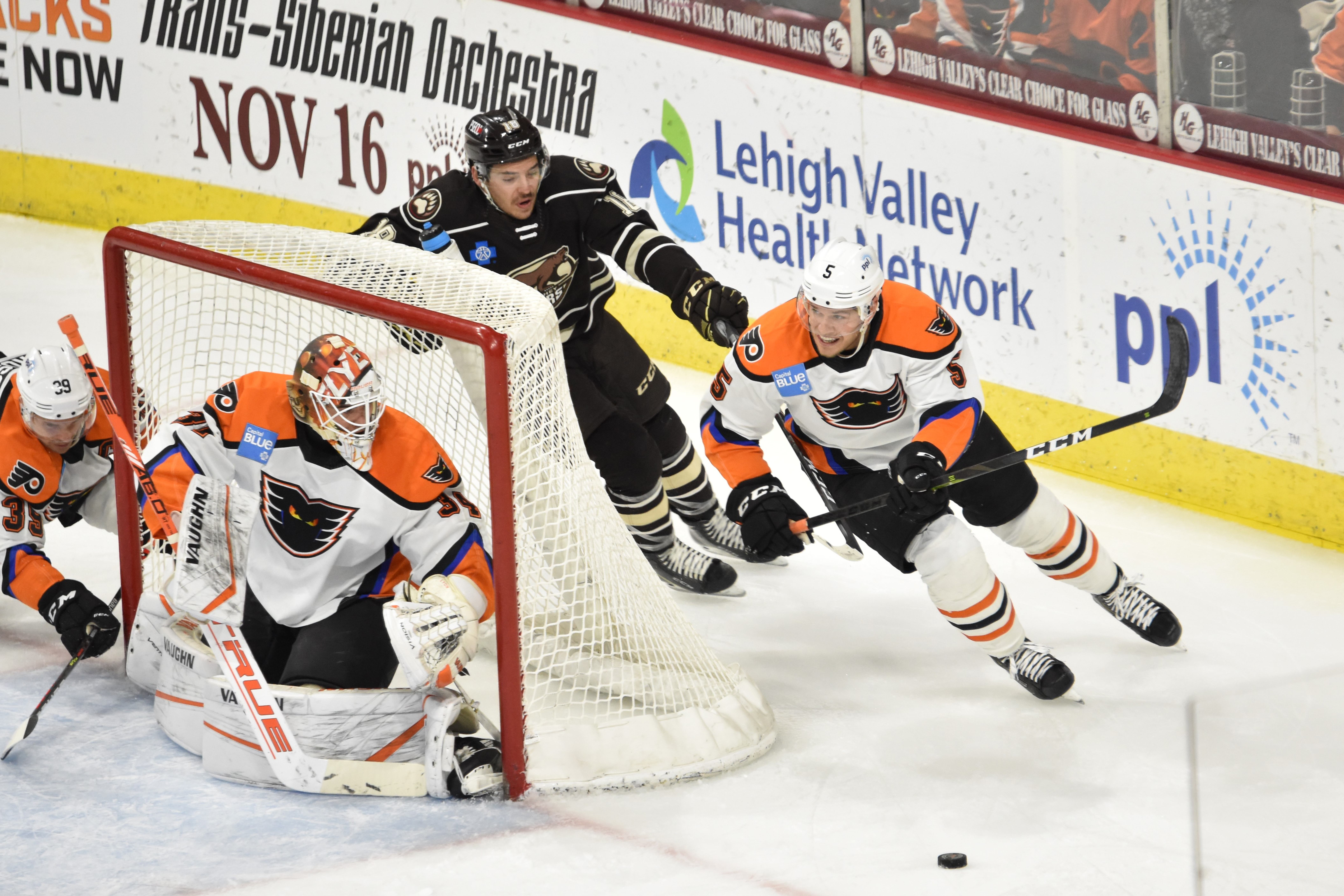 Phantoms goalie Alex Lyon was sharp in the first 20 minutes of action on Saturday, making 12 saves and stopping several quality chances by the Bears in the period. Thanks to Lyon and Vorobyev’s shorthanded goal, the Phantoms took a 1-0 lead into the first intermission.