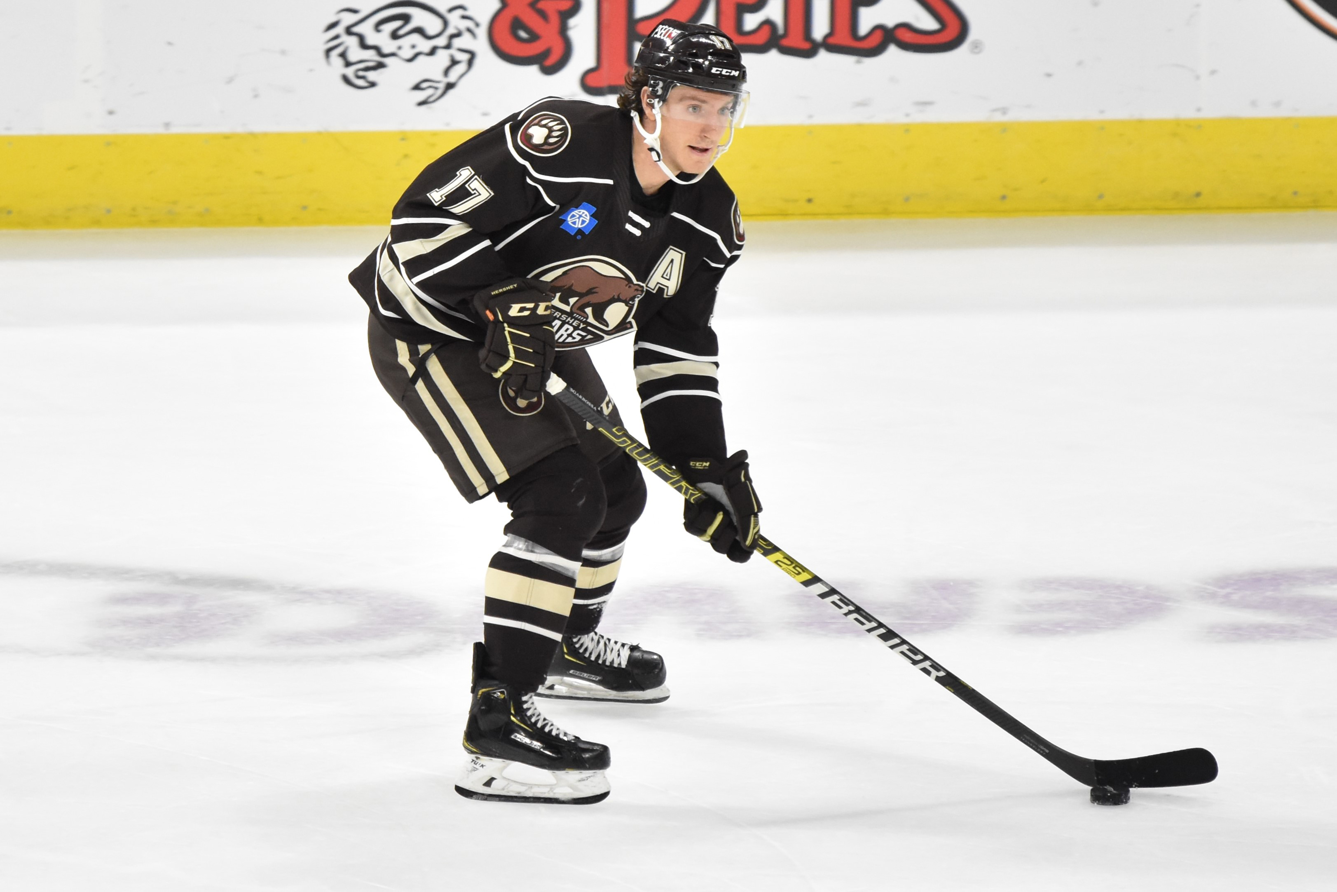 In the second period, the Bears evened the score at the 3:50 mark of the period when forward Matt Moulson beat Lyon with a backhand to tie the game at 1-1. A few minutes later, the Bears took a 2-1 lead when a Liam O’Brien wrist shot ricocheted off the glass before taking a fluke bounce off the back of Lyon’s helmet and trickled into the net.
