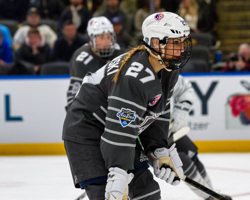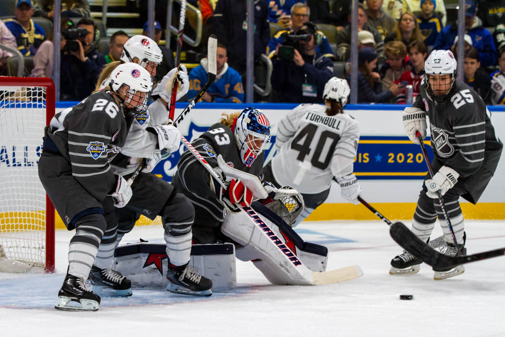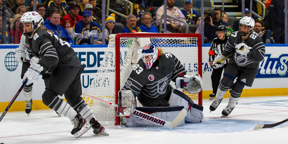 Once they figured it out, the game was a spectacle for the fans. The goalies stole the show the majority of the first period. American Alex Cavallini and Canadian Ann-Renee Desbiens combined to make 17 first half saves.