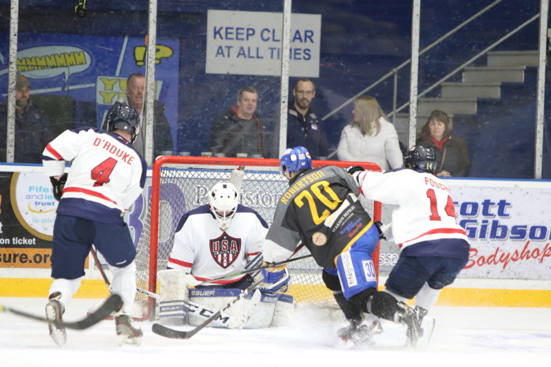 Fife, Scotland: After landing in Edinburgh, Scotland and checking in to the team hotel, it was a relatively short bus ride to Fife, to play the Kirkcaldy Kestrels in game one of the USA Military’s tour of the United Kingdom.