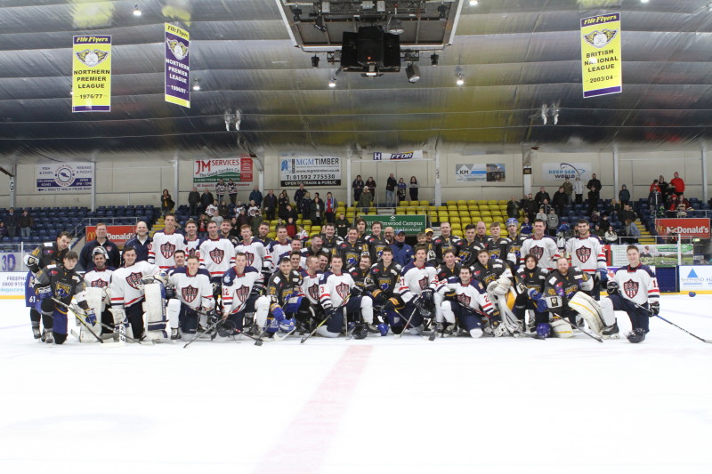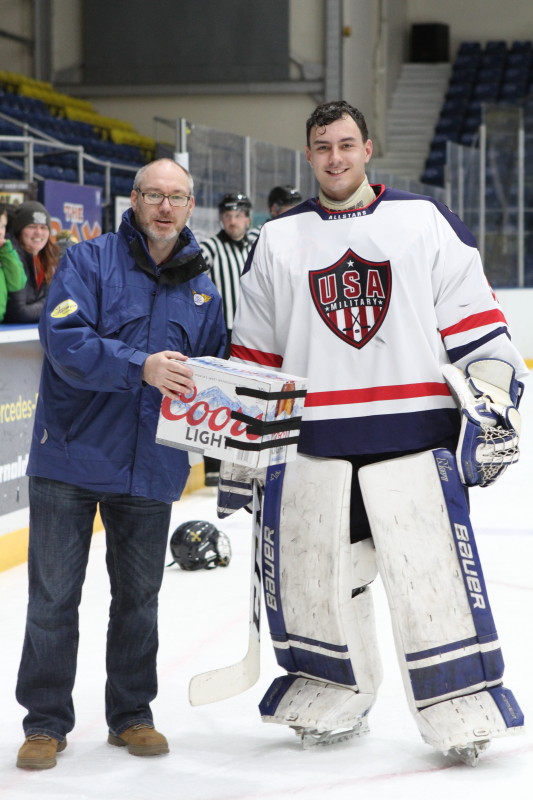 The game started with a jersey exchange between the teams and a ceremonial face off. After the game ended, the awards for each teams “Man of the Match” were handed out and a photo was taken that included both teams at center ice. Dinner was then served to the teams and the family members in attendance.