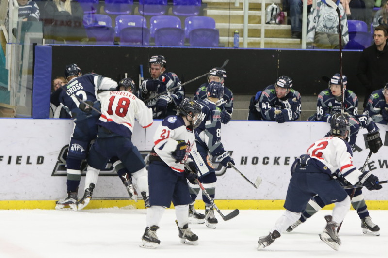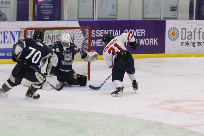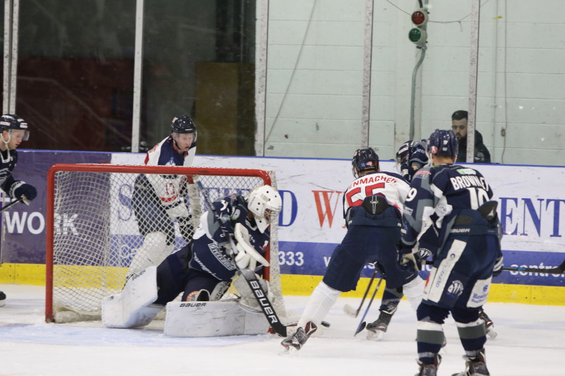 It was a 3-2 tightly played game until a late empty net goal sealed the game for the home team and capping a 4-2 victory for the Steel Dogs.