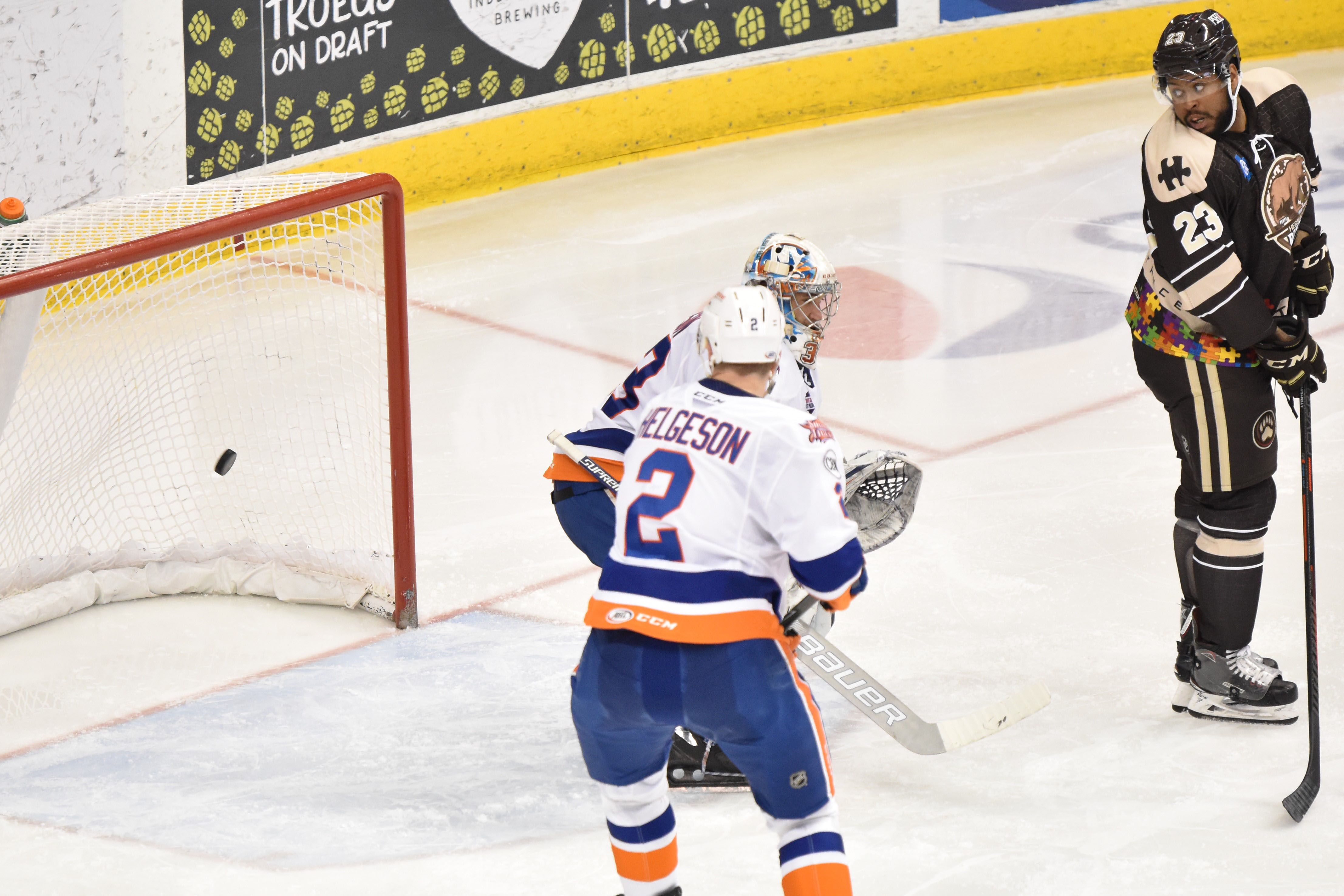Garrett Pilon opened the scoring for the Chocolate and White 9:31 into the game to provide his club a 1-0 lead. Shane Gersich fed a pass from the side of the net to the low slot, and Pilon crashed the crease and fired a quick shot past Sound Tigers goaltender Christopher Gibson. The Bears were granted a power play late in the first period, and the special teams unit hit pay-dirt to double the lead to 2-0. At the 18:30 mark, Aaron Ness blasted a shot from the point that deflected off a Bridgeport body and past Gibson. Hershey’s 2-0 lead at first intermission came with a 9-4 shot advantage.