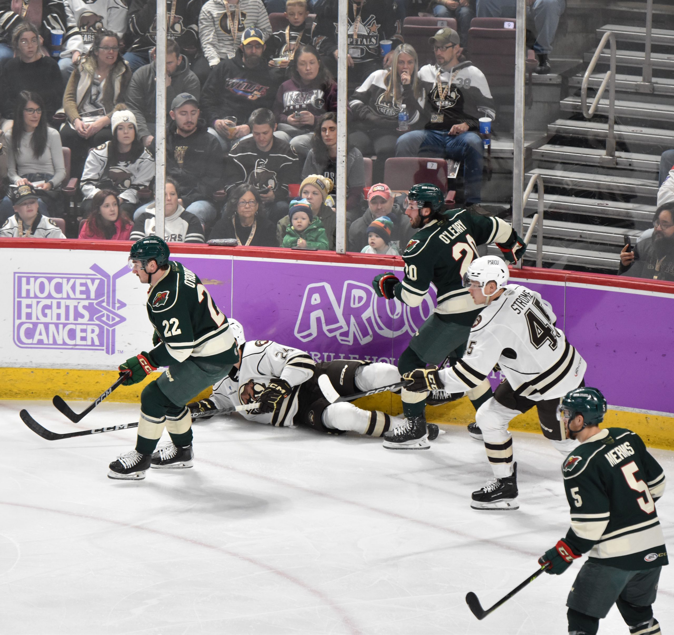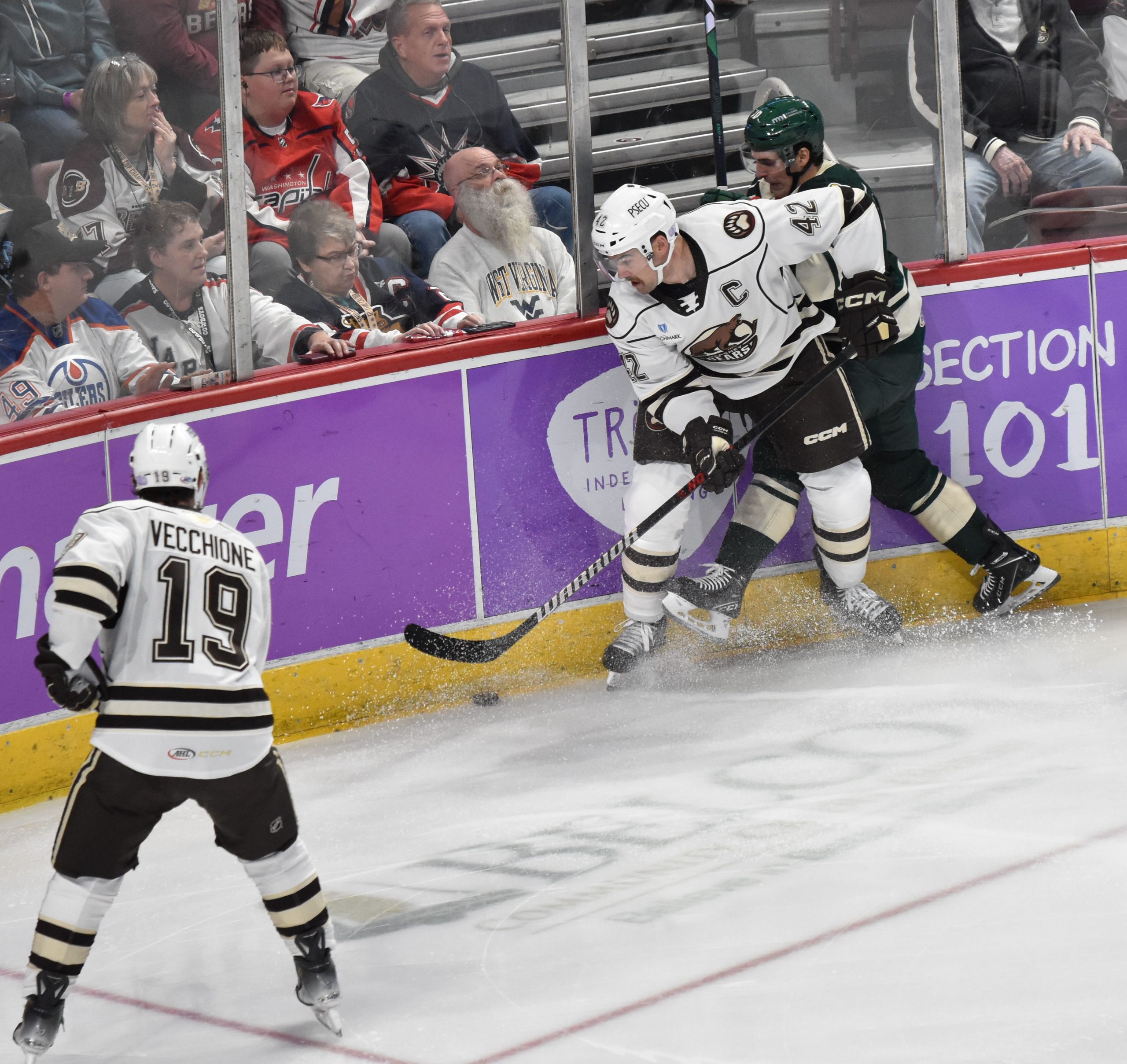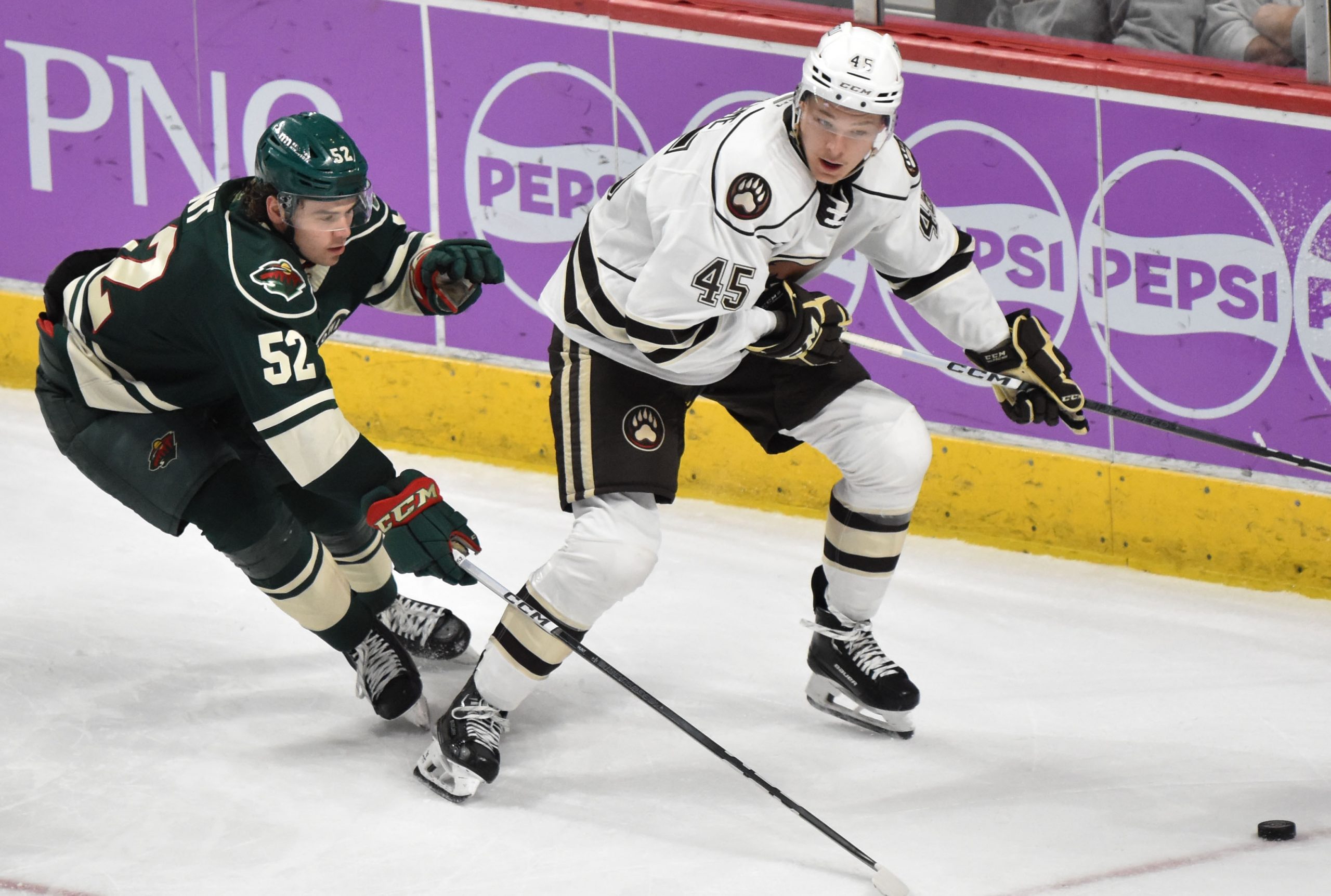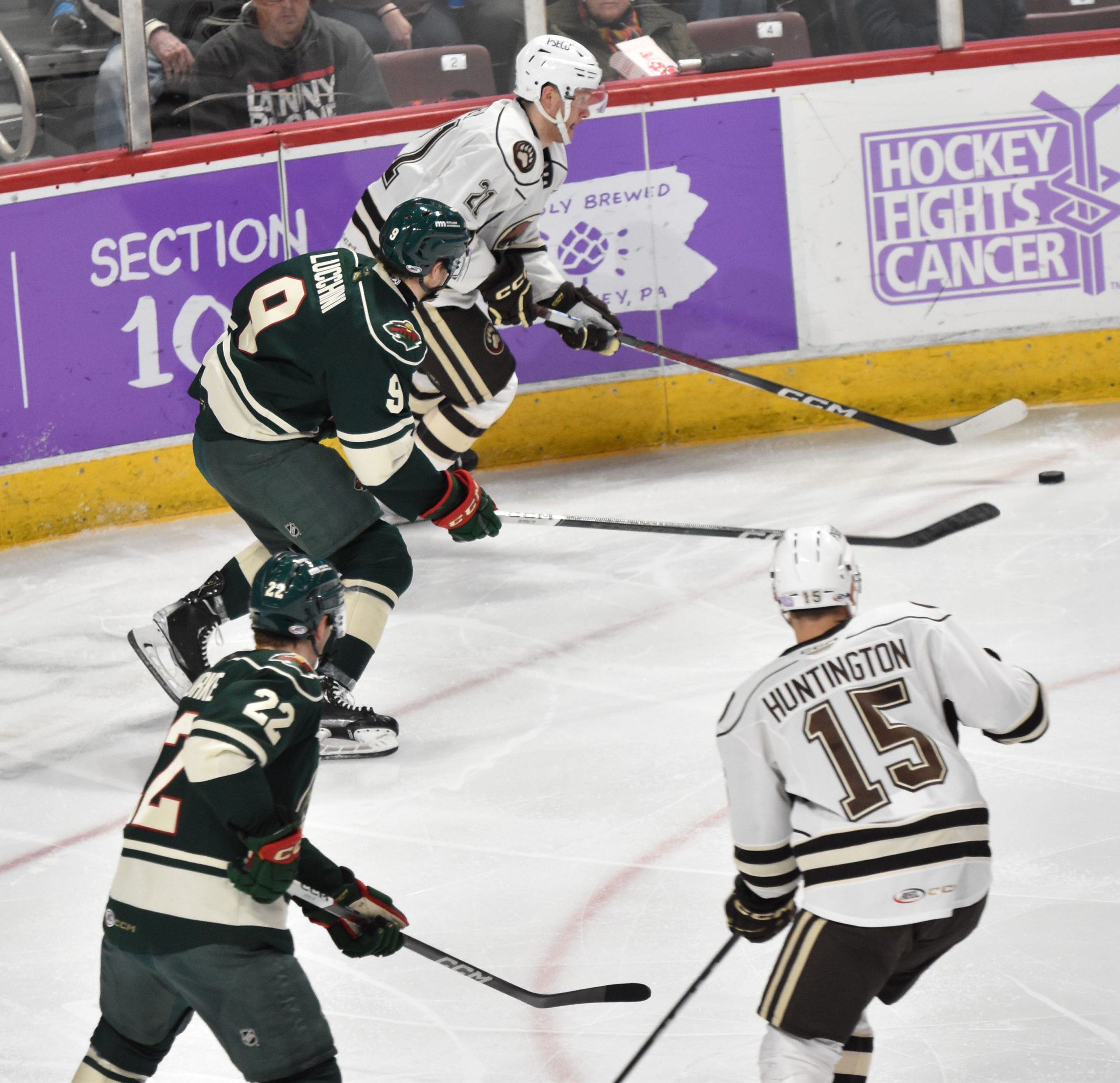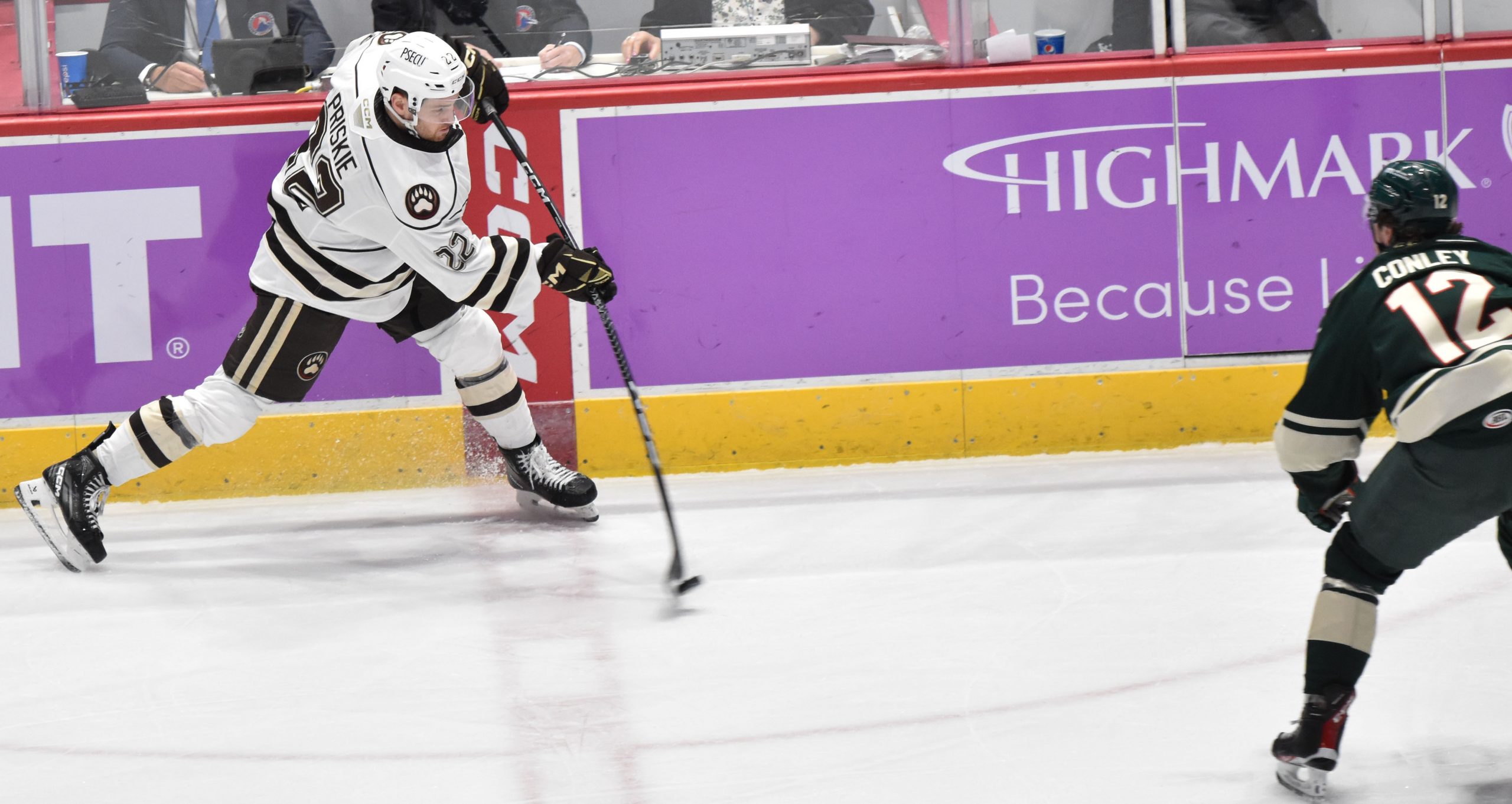 The Bears appeared to take a 3-1 lead with a shorthanded goal at 13:50, but Riley Sutter was deemed to have kicked the puck into the net by the official as Sutter attempted to corral his own rebound, negating the potential goal. A subsequent video review didn’t produce enough evidence for the officiating crew to overturn the decision, and the score remained 2-1 in favor of Hershey.