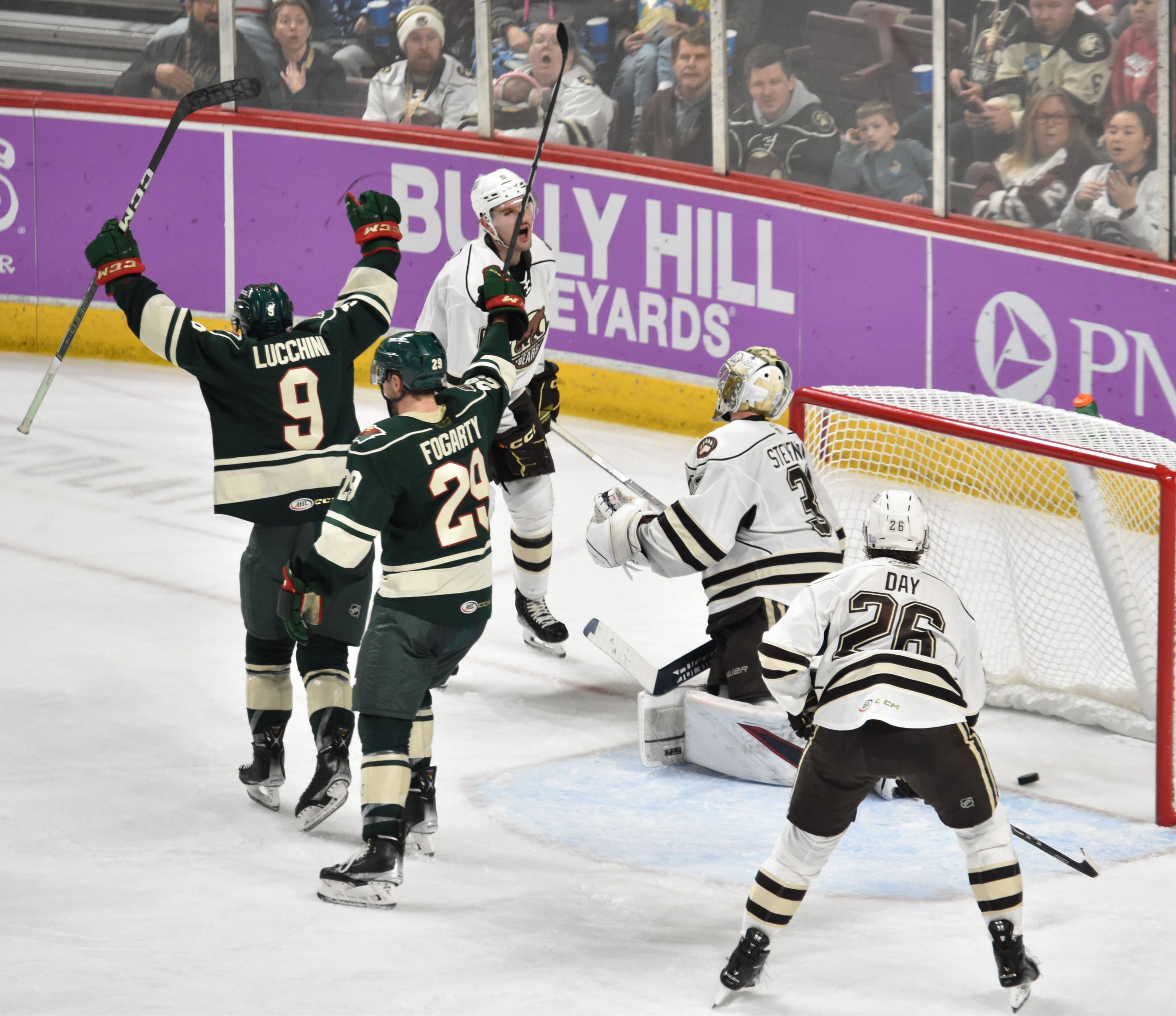 Shots finished 27-20 in favor of the Wild. Stevenson went 26-for-27 to secure his sixth victory of the season; McIntyre went 18-for-20 in the defeat for Iowa. Hershey went 2-for-5 on the power play; the Wild went 1-for-4 with the man advantage.