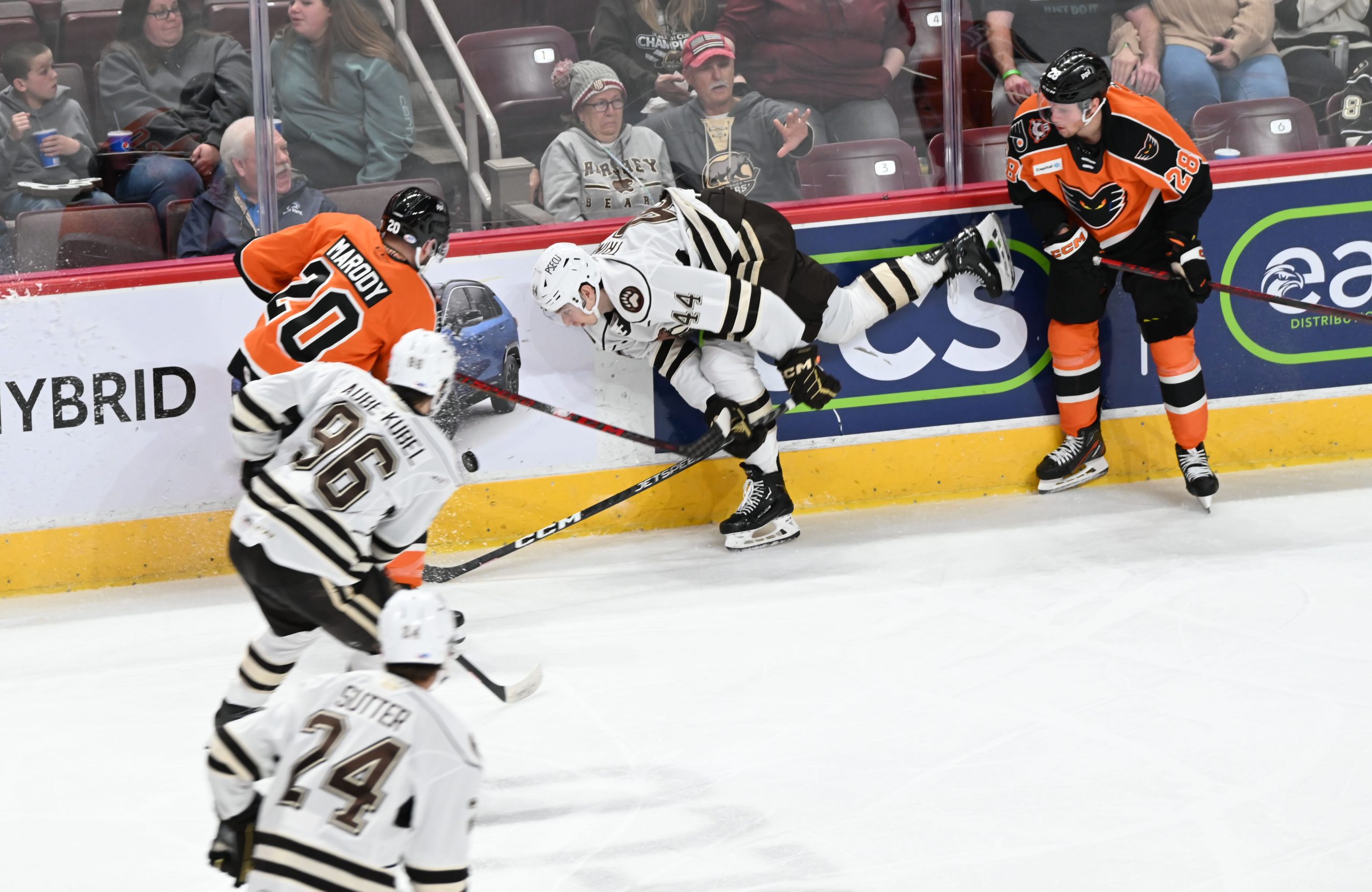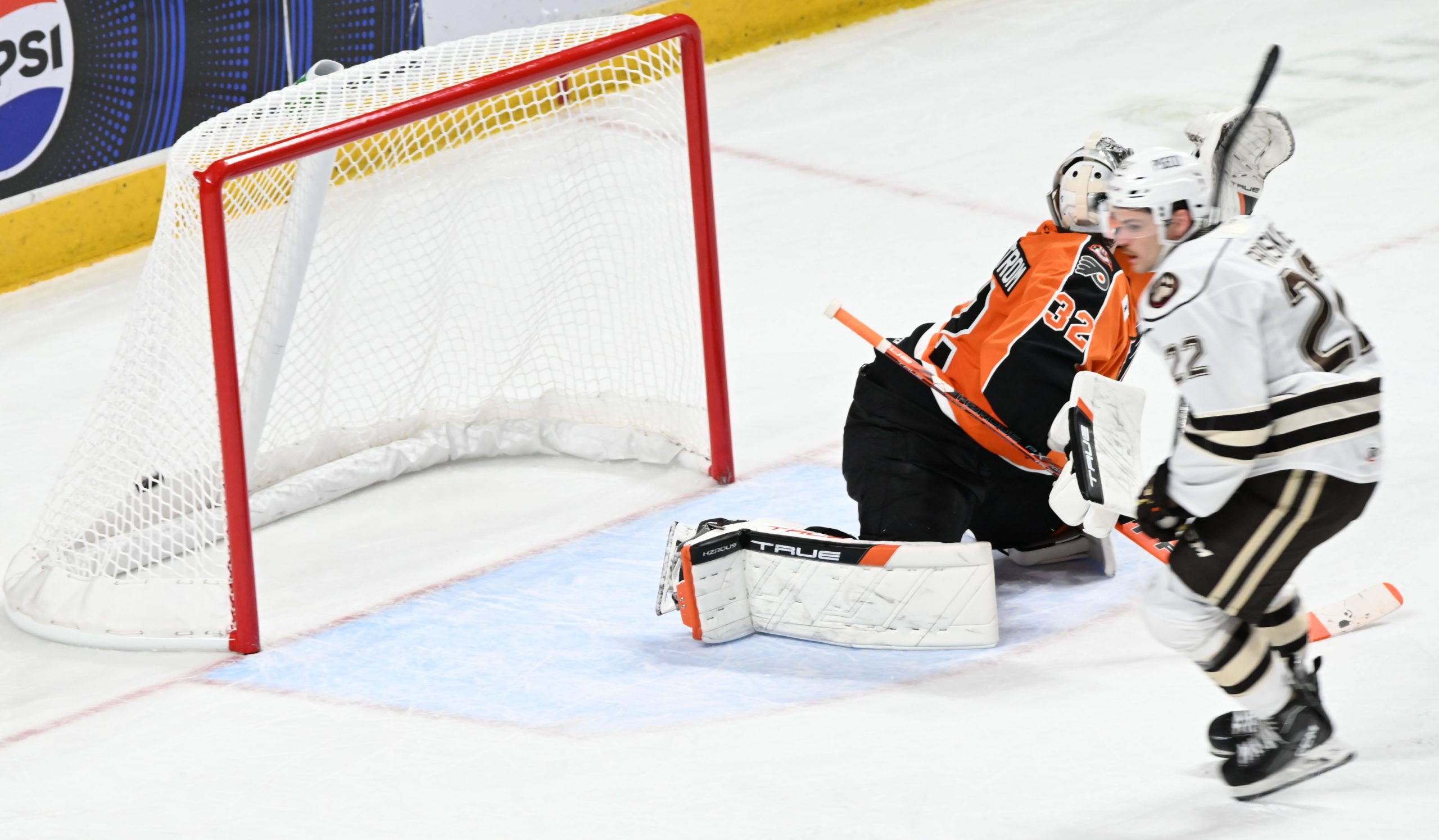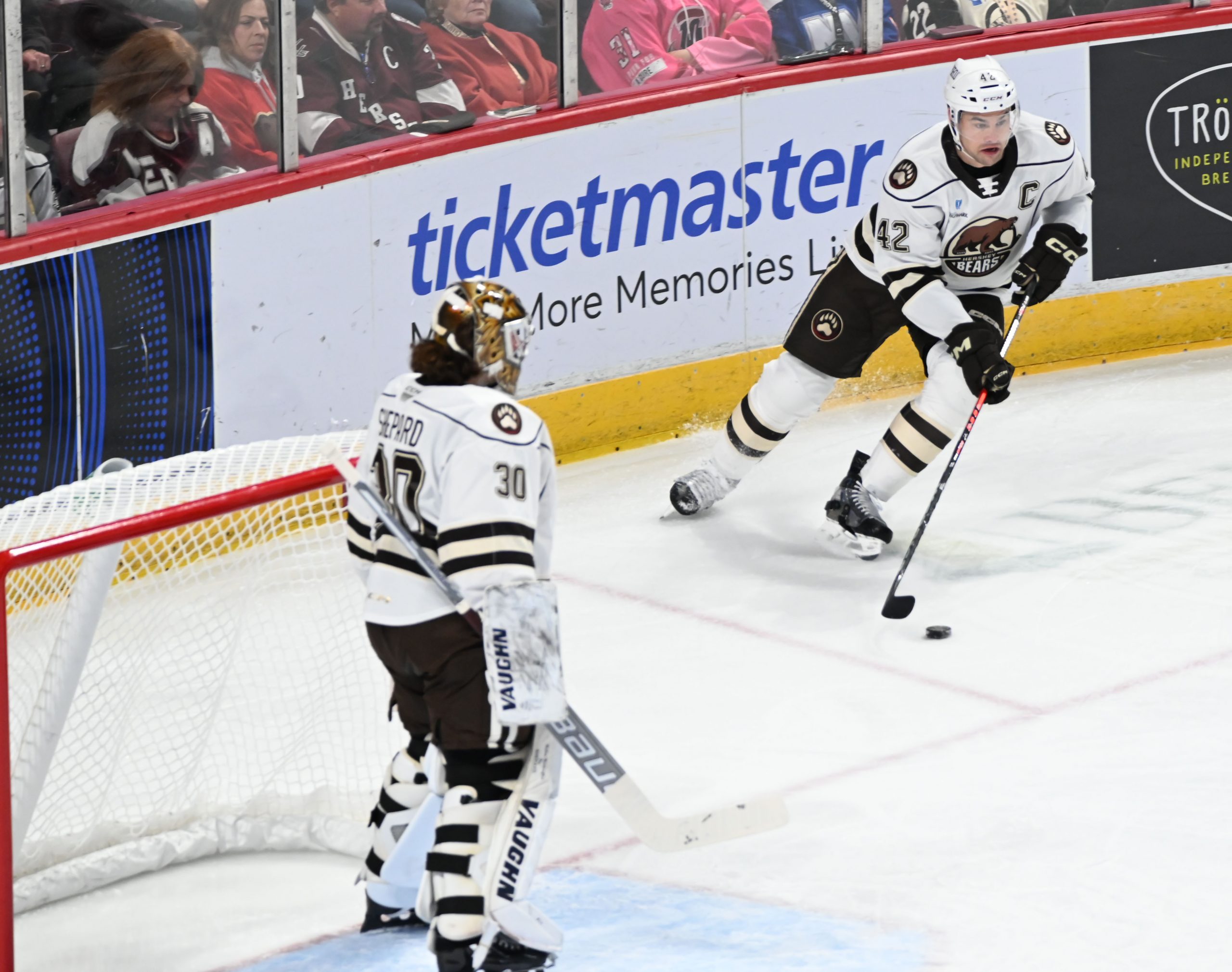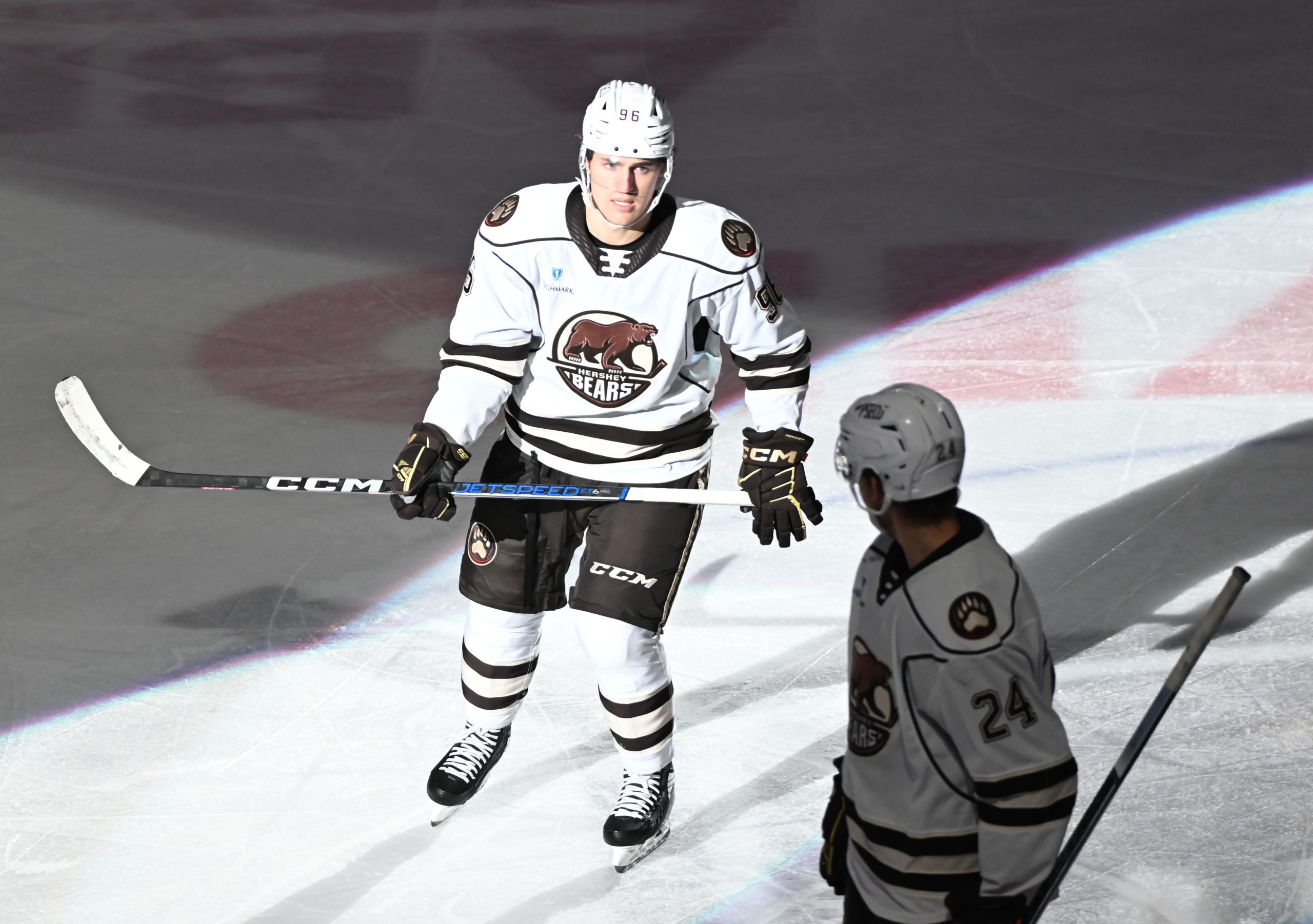 Priskie secured the extra point for Hershey in the additional frame when Mike Sgarbossa stripped Marody of the puck at the Bears blue line, allowing Priskie to skate in on Sandstrom on a breakaway and beat the netminder with a shot to the glove side to win it for the hosts. The goal marked Priskie’s 100th career professional/AHL point. Hershey improved to 7-0-0-0 this season when Sgarbossa has recorded a point.