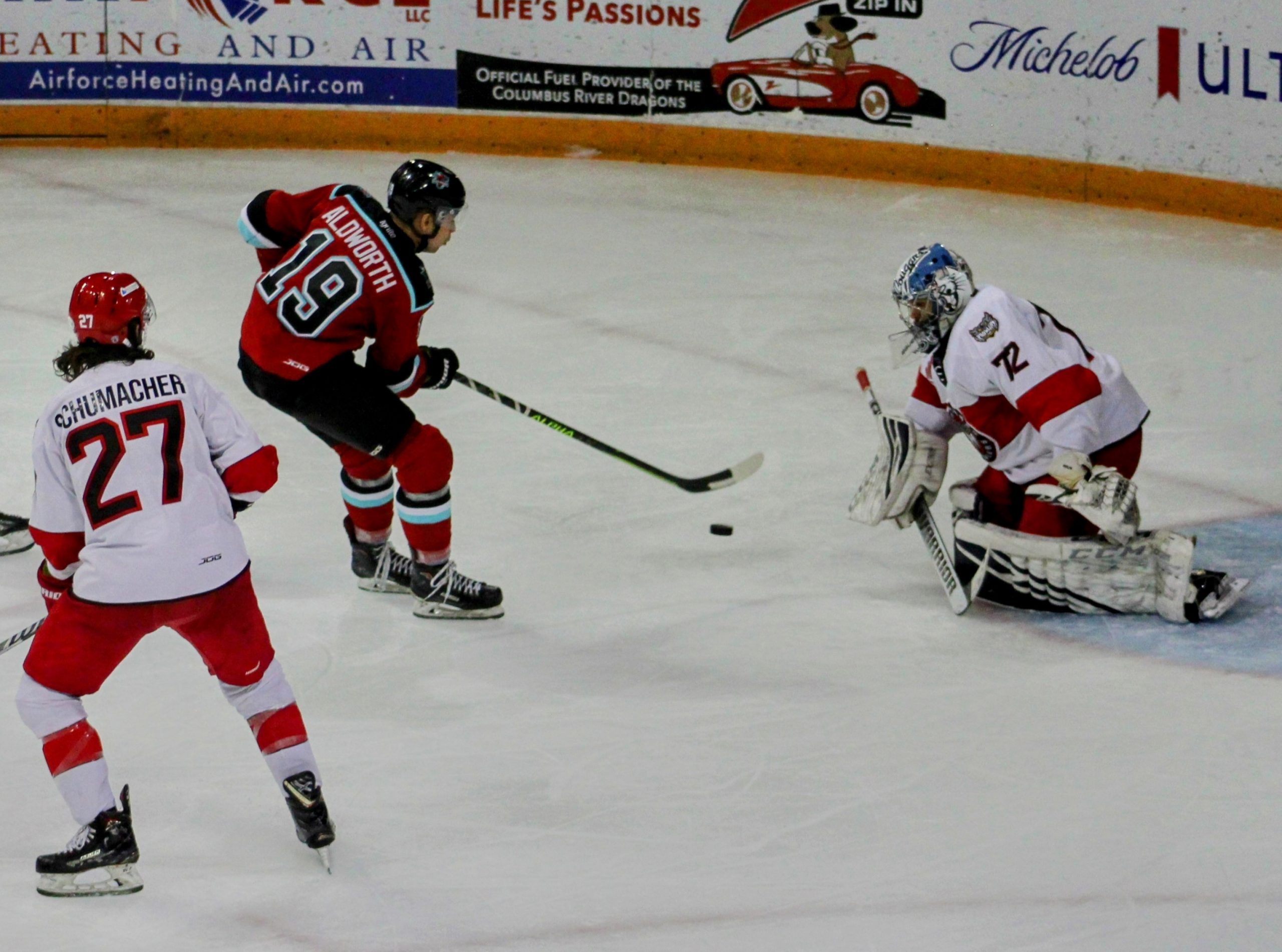 It was a pretty quiet game for the two teams until the dragon’s struck at 10:06 into the first period where Aldworth got a feed to slip into the open net. Very few other moments happened throughout the first period. The dragons took that 1-0 lead into the intermission.