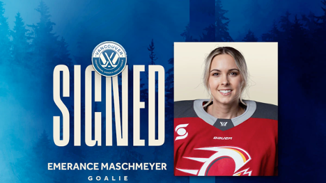 VANCOUVER, BC – PWHL Vancouver today announced that goaltender Emerance Maschmeyer has agreed to terms on a two-year Professional Women’s Hockey League Standard Player Agreement to join the team through the 2026-27 season. Maschmeyer, who spent the past two seasons as a member of the Ottawa Charge, is the third player to sign with PWHL Vancouver ahead of the team’s inaugural campaign.