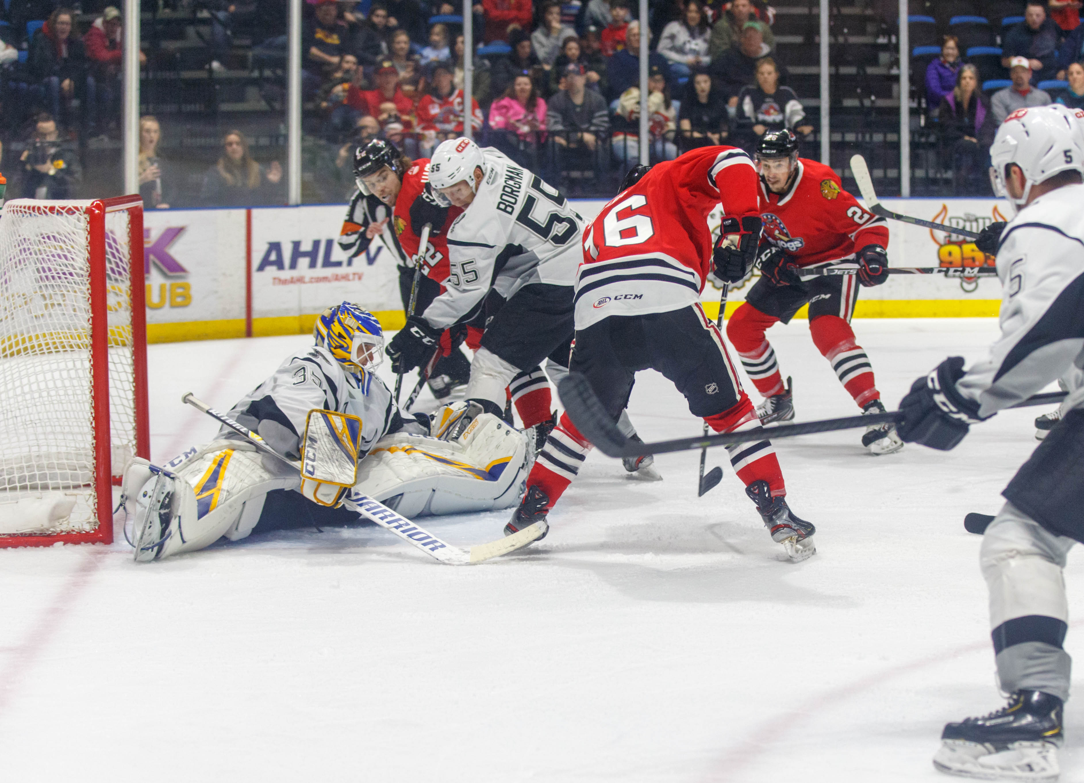 Rockford opened the scoring in the first period with the first of two power play goals. At 13:28, John Quenneville’s wrister from the top of the right circle beat Husso for his 12th of the season, and fourth in the last five games, to give the IceHogs a 1-0 lead.