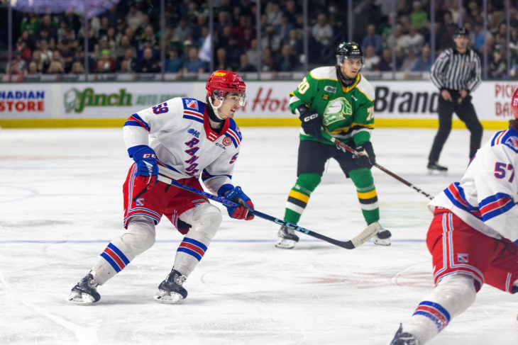London, Ont. – The Rangers scored three third period goals Thursday but it wasn’t enough as London recorded an 8-4 victory over the Rangers in front of 9,036 fans at the Budweiser Gardens. Francesco Arcuri (Dallas Stars) scored twice for the Rangers, Reid Valade and Mitchell Martin both found the back of the net and both Marco Costantini and Marcus Vandenberg split time between-the-pipes.