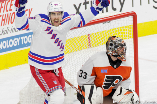 Rempe planted himself in front of the Flyers cage, and deflected a puck that the Rangers’ Barclay Goodrow had already deflected once before.