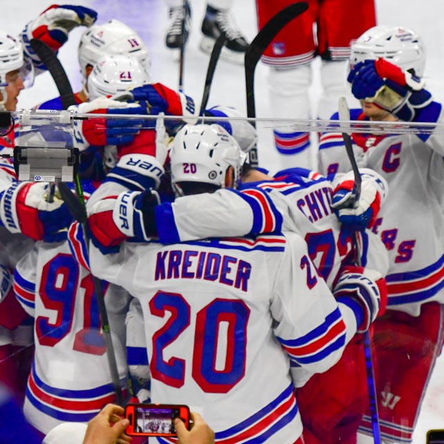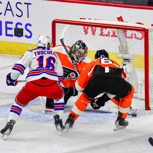 “I thought we forechecked way better, supported pucks way better,” Laughton said. “Got back on our heels a little bit in the third, but it’s what happens when you’re leading. They’ve got some good players and they had a tipped goal [by Kreider] and they finish in overtime.
