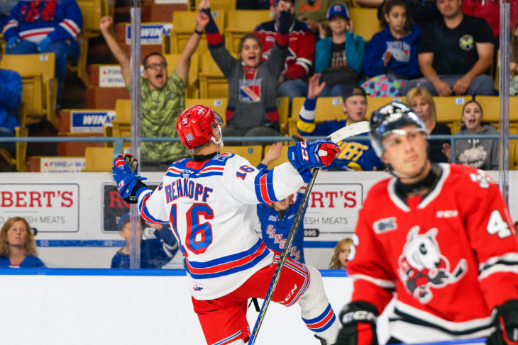 St. Catharines, Ont. – Hunter Brzustewicz and Carson Rehkopf recorded three-points each and Rehkopf scored the game-winning goal to lift the Rangers to a 6-5 victory over the Niagara IceDogs in front of 4,913 fans Saturday night.