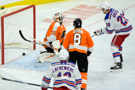 In Philadelphia, the New York Rangers finally got a win, against mostly a taxi squad of Flyers.