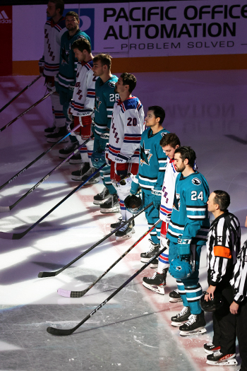 “We played a great game tonight, I was happy with our performance,” New York coach Gerard Gallant said. “We played hard, had lots of scoring chances, and (Sharks goalie James) Reimer played outstanding.”