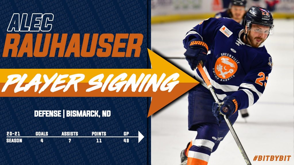 GREENVILLE, SC – The Greenville Swamp Rabbits announced defenseman Alec Rauhauser has re-signed with the team ahead of the 2021-22 season.
