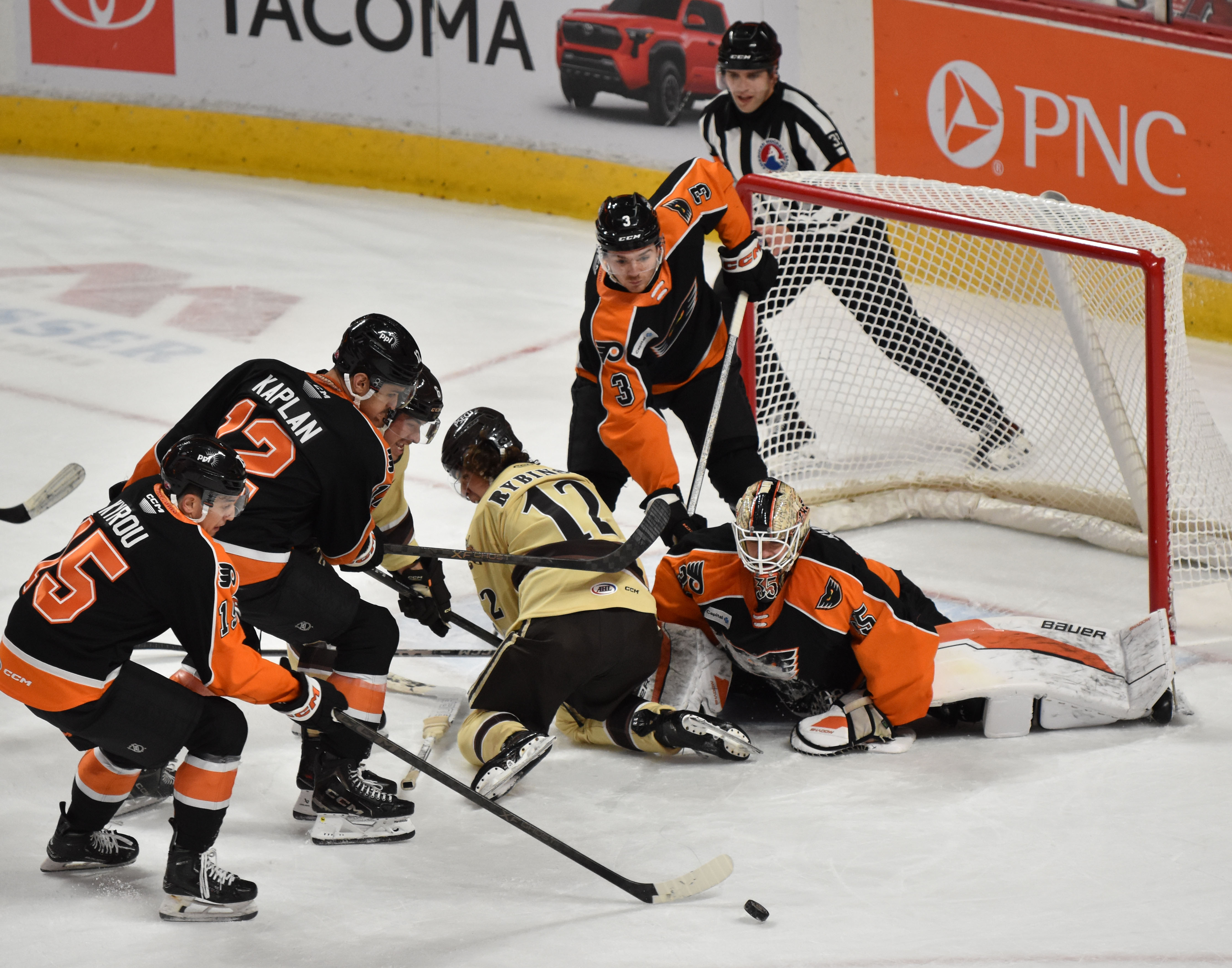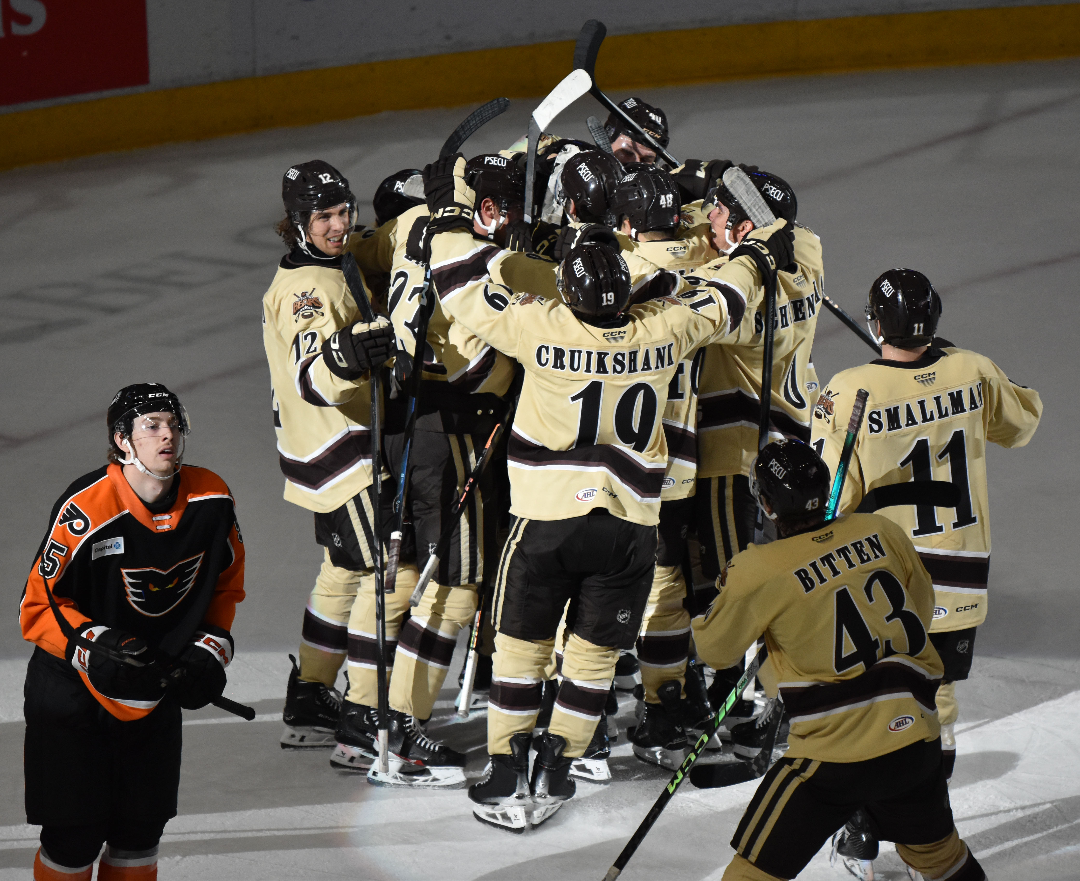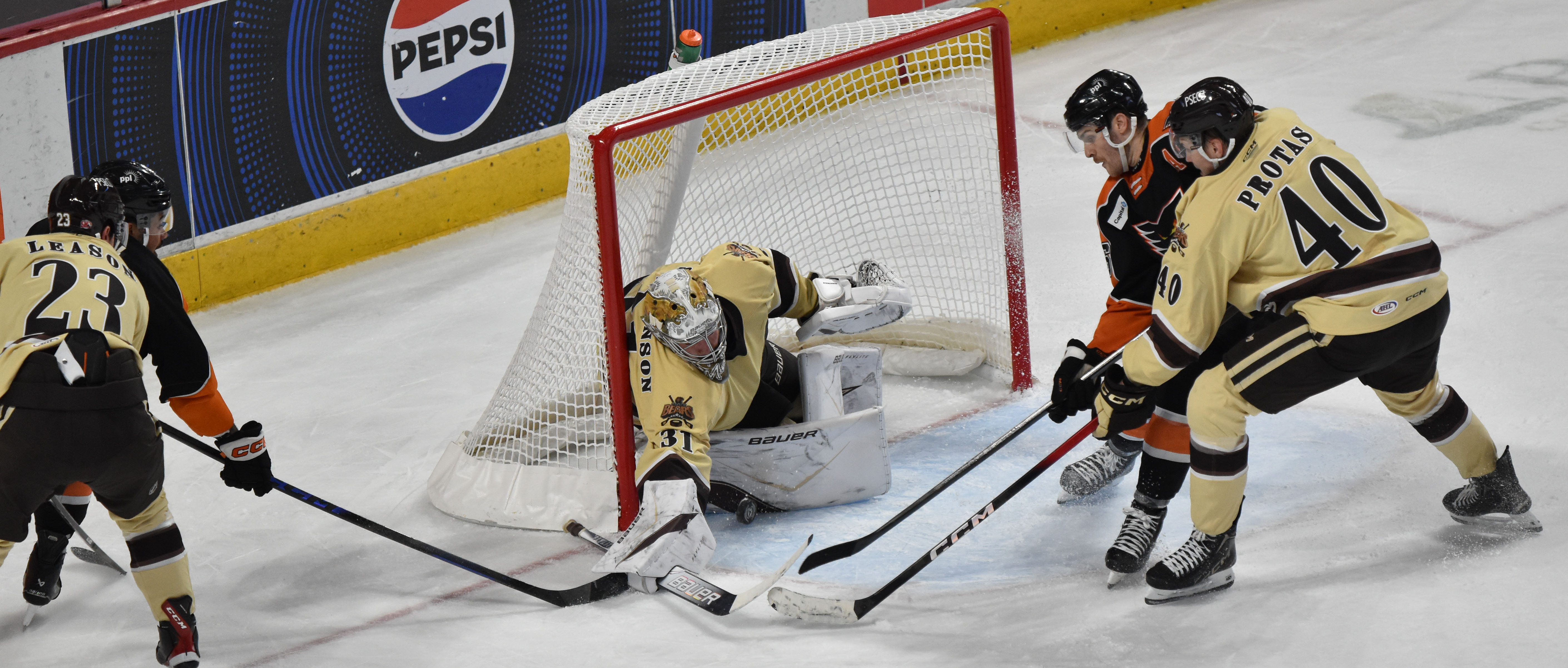 Ilya Protas tied the game at 1-1 at 13:12 of the third period with his third goal in as many games and his fifth of the season after he knocked in D.J. King’s initial shot that had banked off the boards behind the Lehigh Valley net.