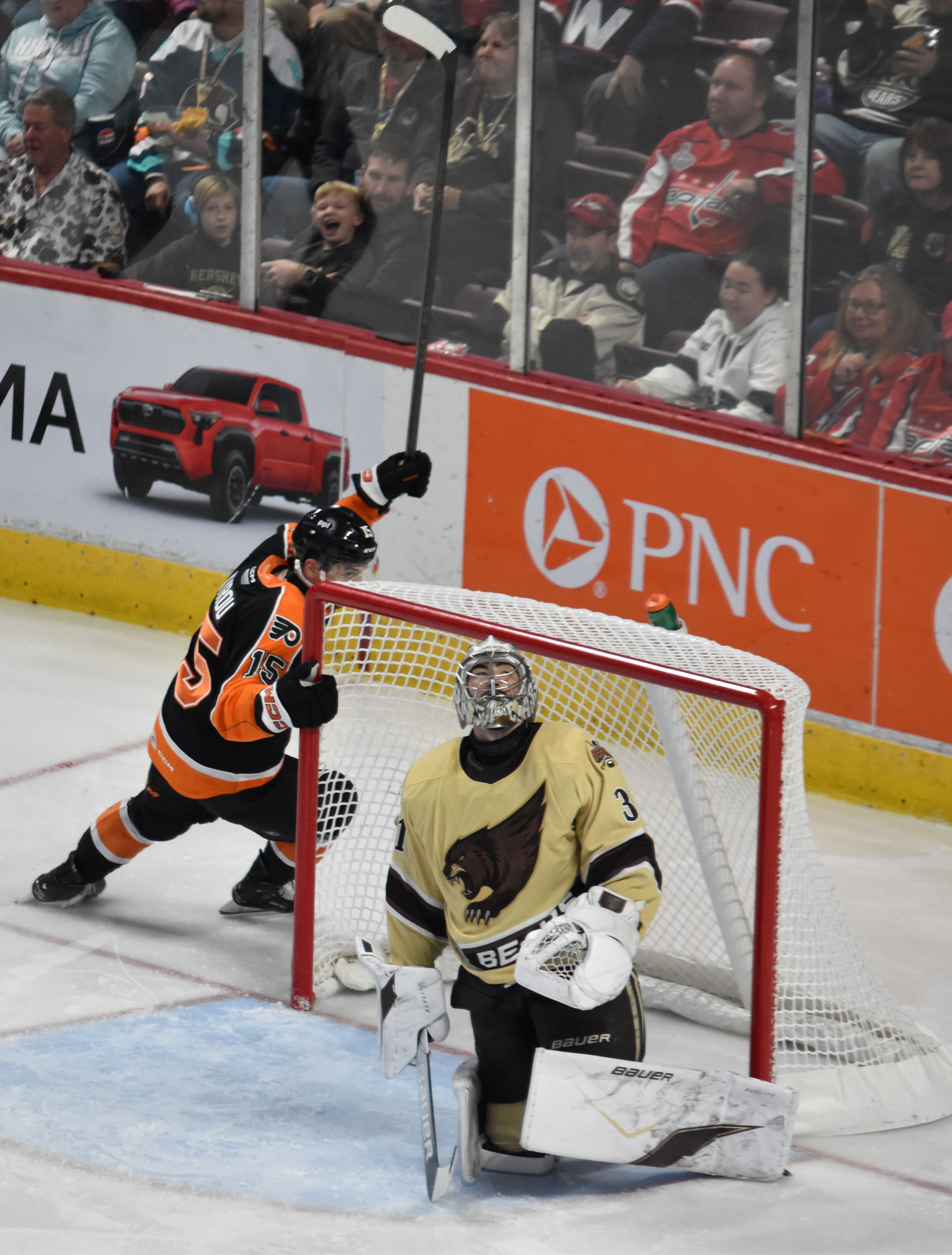 Sunday, November 16, 2025, the Hershey Bears vs the LV Phantoms. The Bears beat the Phantoms in overtime by a score of 2-1.