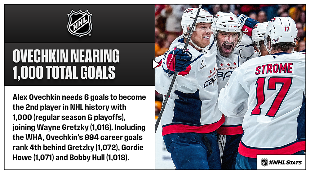 * Ovechkin continues THE GR8 CHASE for Victory Over Cancer with the Capitals, Hockey Fights Cancer and V Foundation by personally donating to pediatric cancer research for each regular-season goal he scores for the remainder of his career. Click here for details.