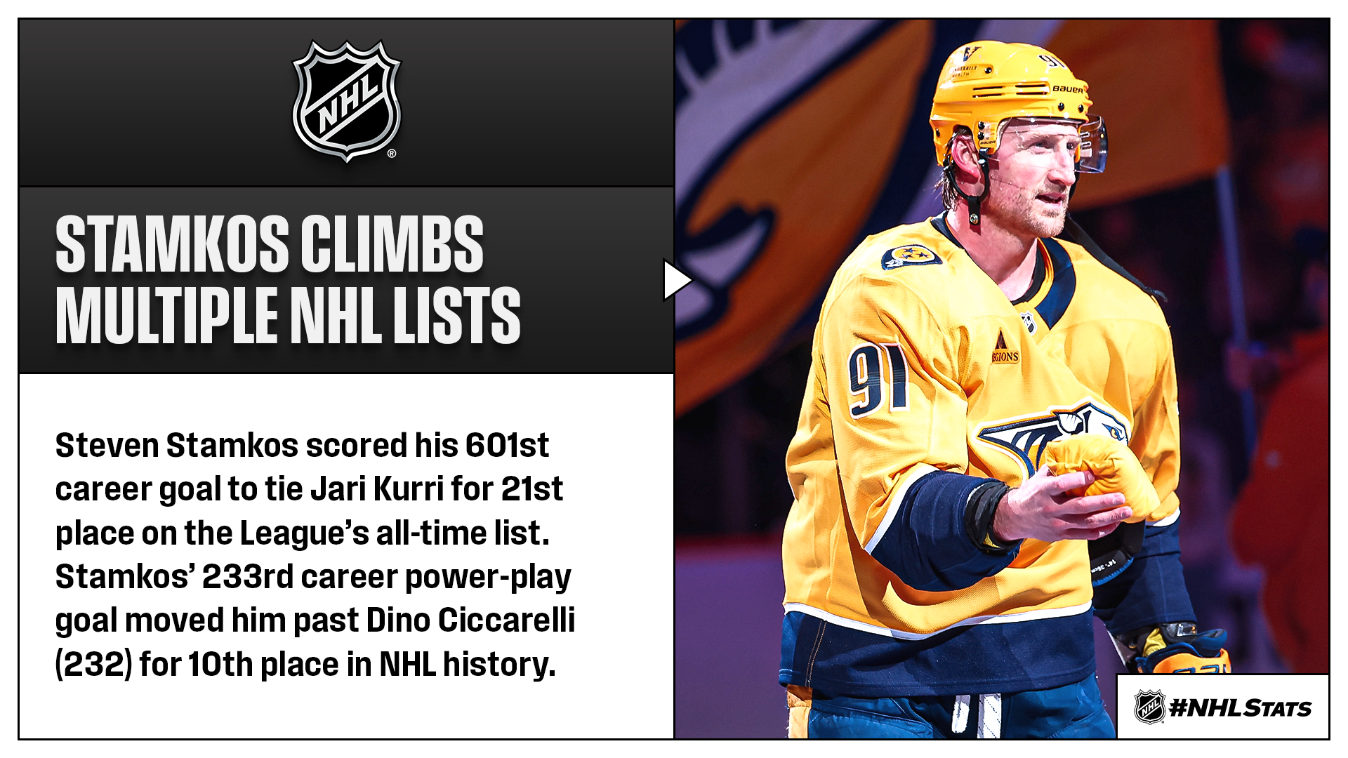 Roman Josi and Steven Stamkos helped the Predators prevail against fellow veteran Alex Ovechkin, who reached the 20-goal mark for the 21st time in as many seasons.