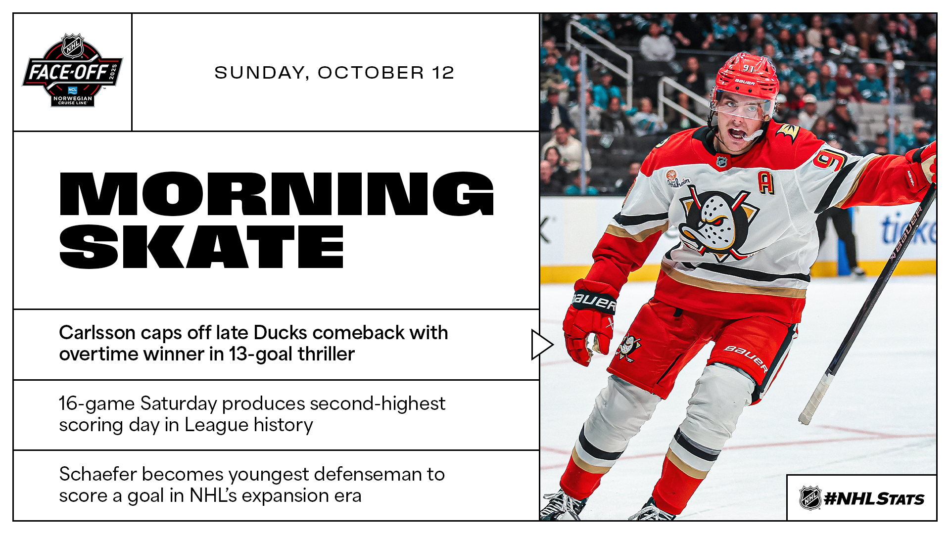 * The first of two 16-game days in 2025-26 saw 110 total goals scored across the League – the second-highest scoring day in League history – with the Ducks, Blue Jackets, Red Wings, Rangers and Panthers among the highest-scoring teams.