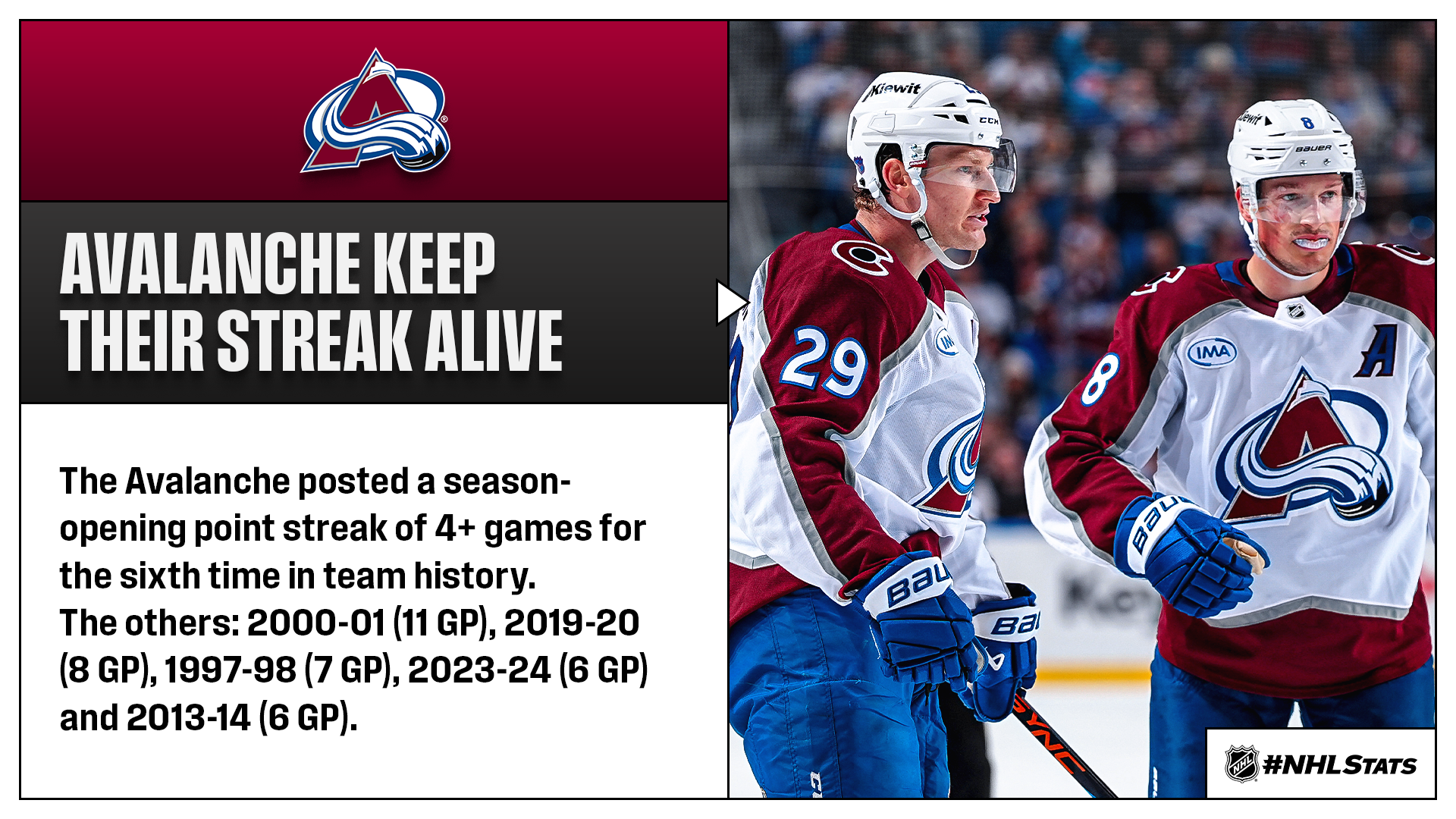 A total of six Central Division clubs found the win column Monday, with the Avalanche and Predators being the two among that cohort to keep their season-opening point streaks alive.