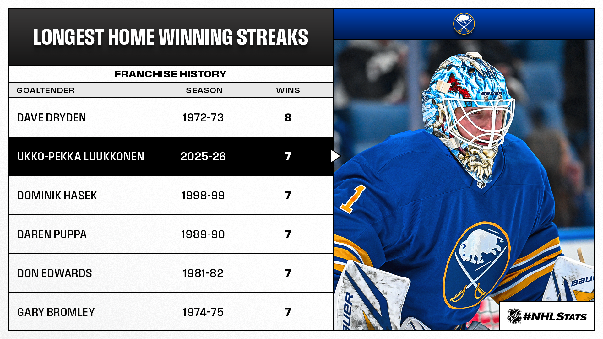 * Several Olympic-bound players made their impact felt Wednesday, including Team Finland’s Ukko-Pekka Luukkonen, who extended his home winning streak to seven games and helped the Sabres improve to 14-2-0 in their last 16 contests.